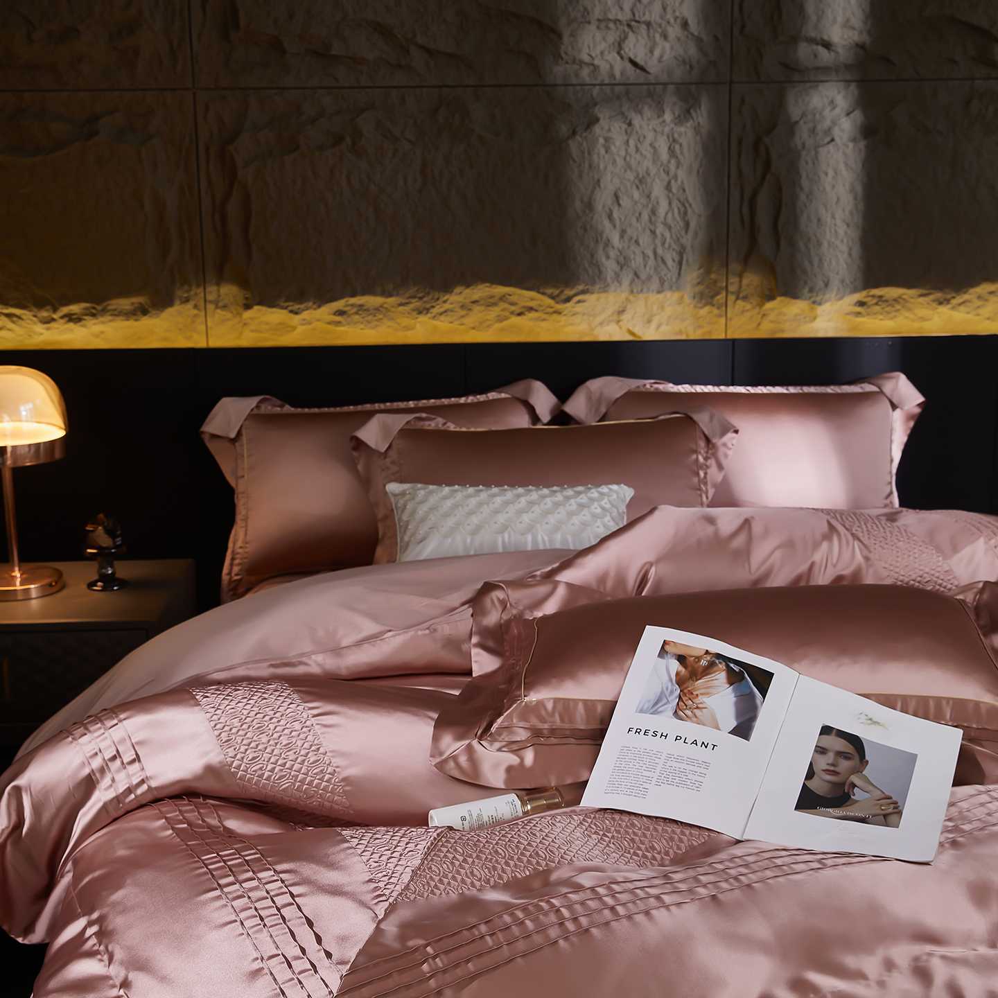 (总)edra 2026新款真丝天丝轻奢提花床盖款四件套-拉斐尔,香槟白,粉,银灰,金咖,蓝
