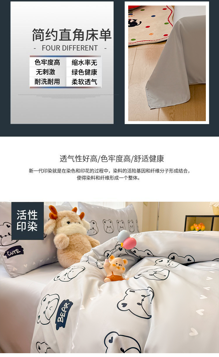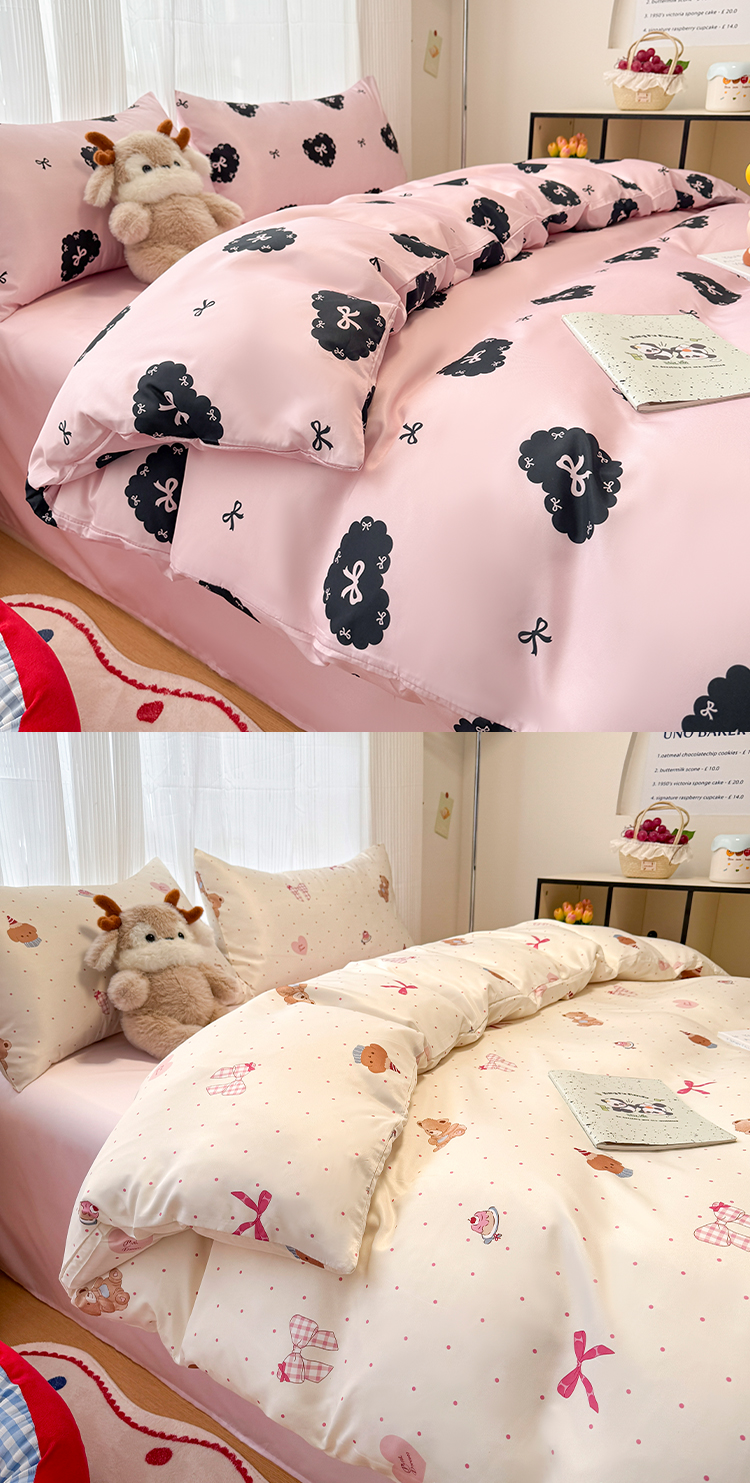 (总)老K (原美阁) 2024新款高克重印花水洗棉四件套超柔软云朵棉床上宿舍三件套单被套,旦旦兔,粉格蝴蝶结,风与爱,复古小熊,可可庄园,聆听雨音,梦幻蝴蝶,晚风,圆圆兔,紫色花园