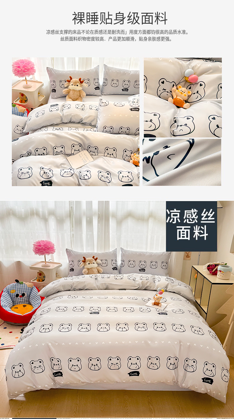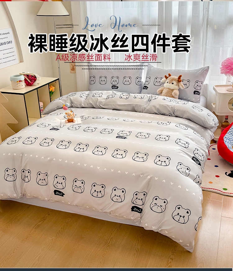 商品名称:(总)老K (原美阁) 2026春夏新款卡通冰丝简约款水洗真丝四件套