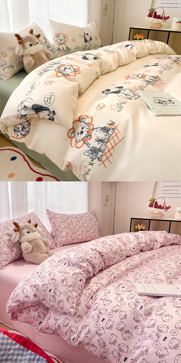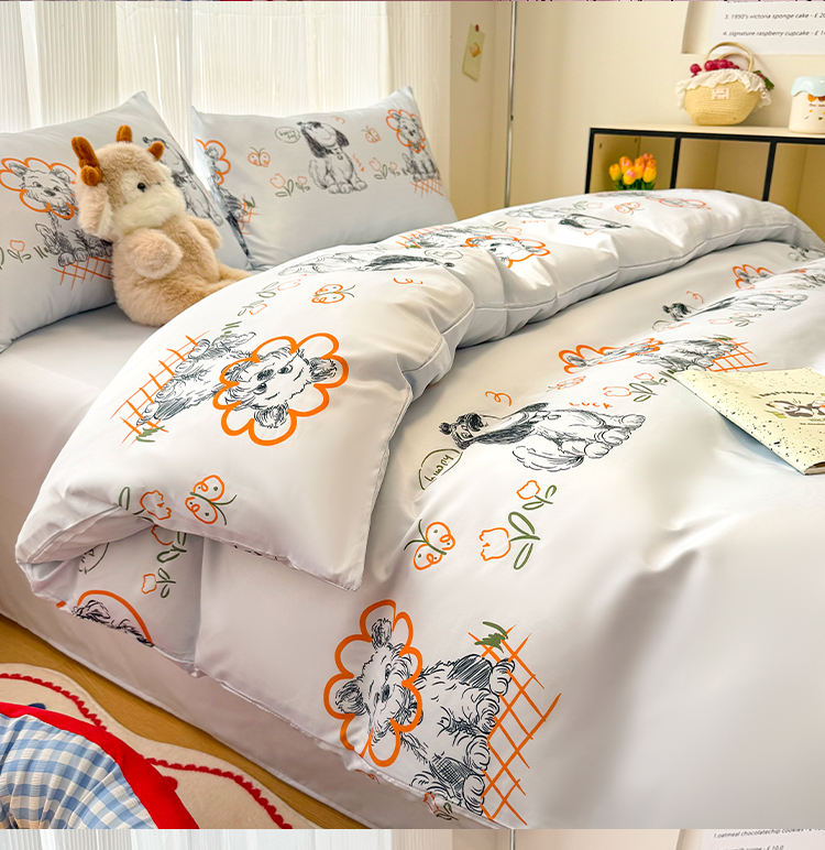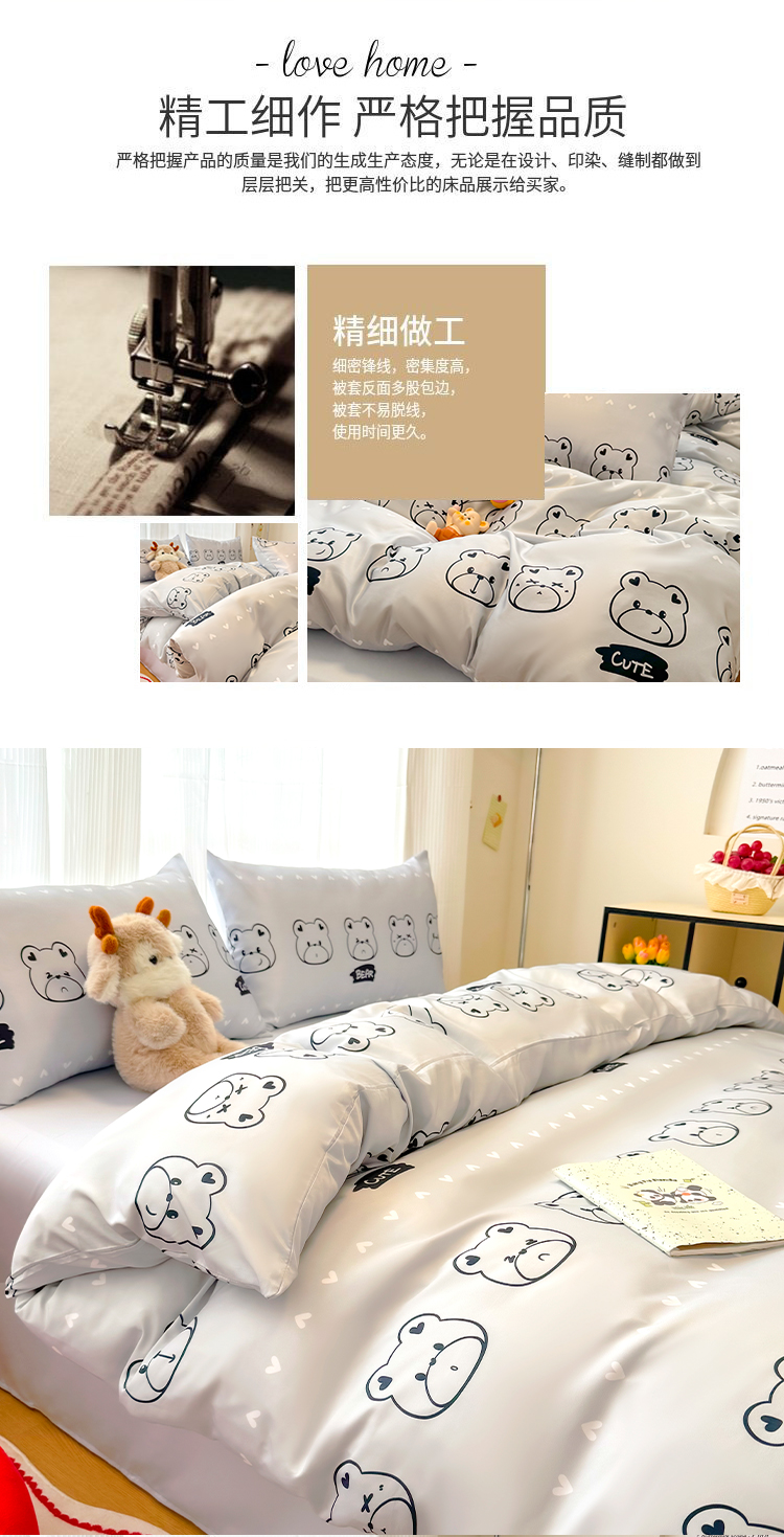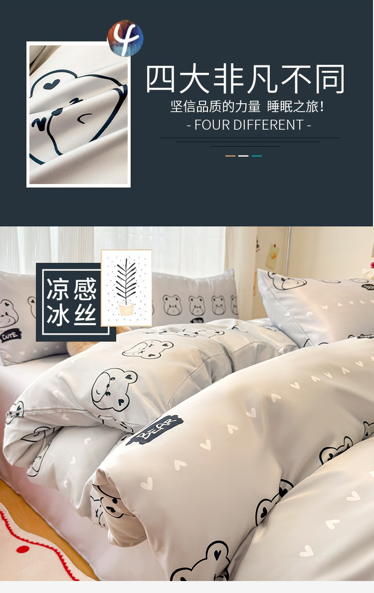 (总)老K (原美阁) 2026春夏新款夏季冰丝四件套学生宿舍水洗真丝三件套,波点小熊,呆呆熊-兰,蝴蝶结小煤球,萌宠狗狗,桃心小卷,春日小狗