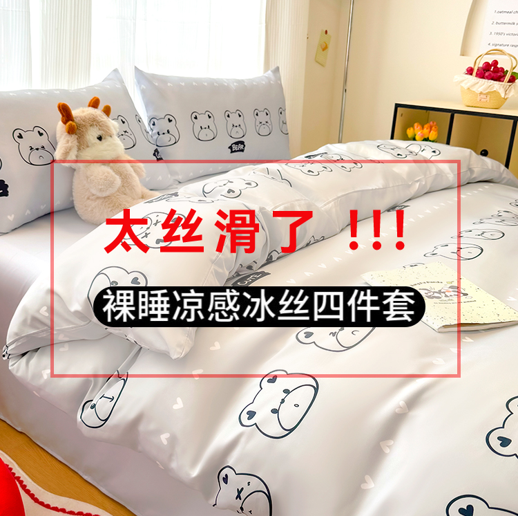 (总)老K (原美阁) 2026春夏新款卡通冰丝简约款水洗真丝四件套