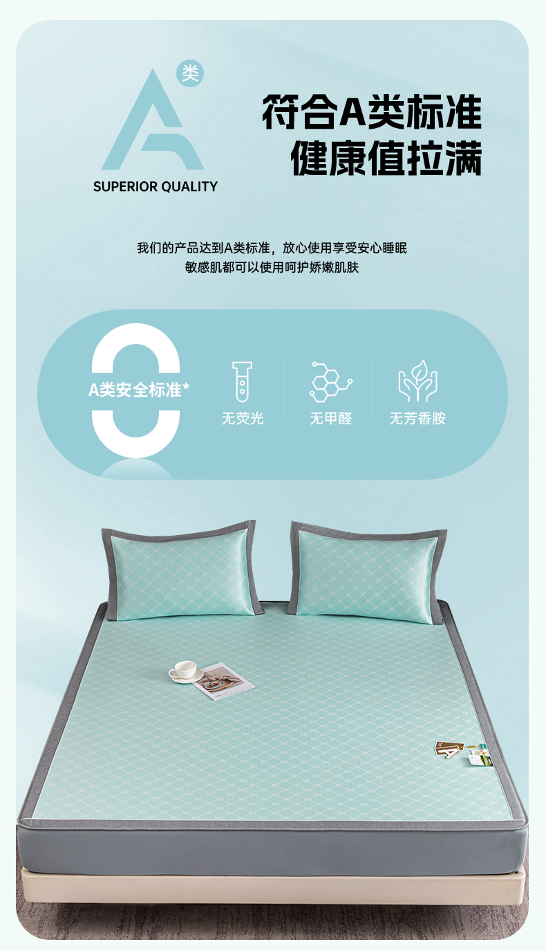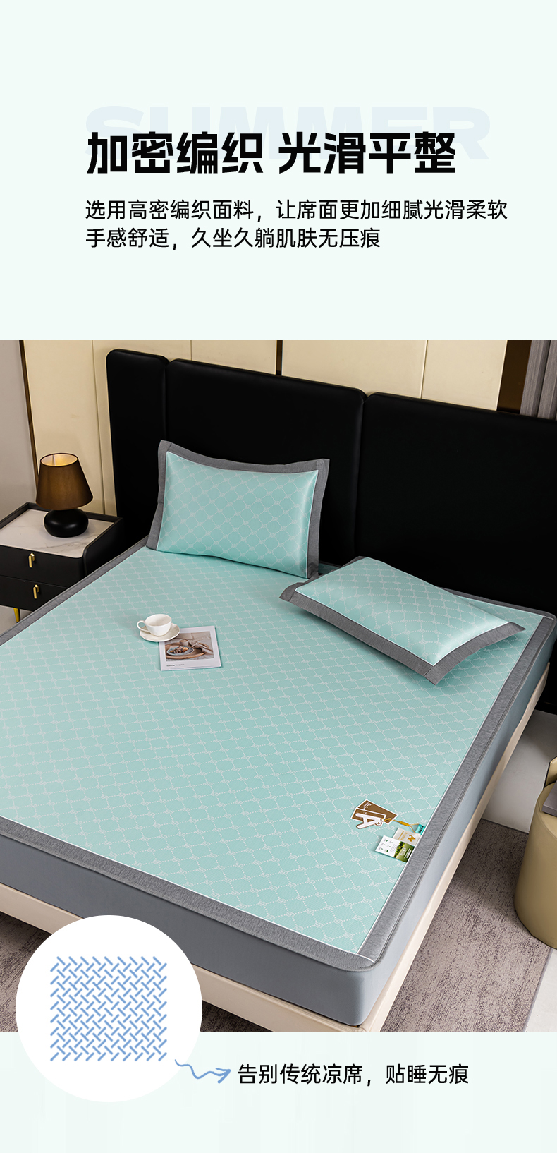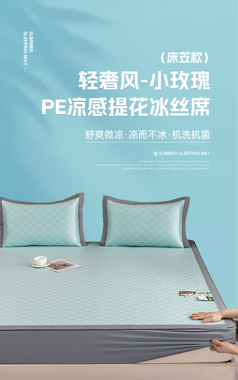 (总)2023新款超精密冰丝席-小斜纹系列-床笠款藤席凉席竹席,粉色,蓝色,绿色,银灰