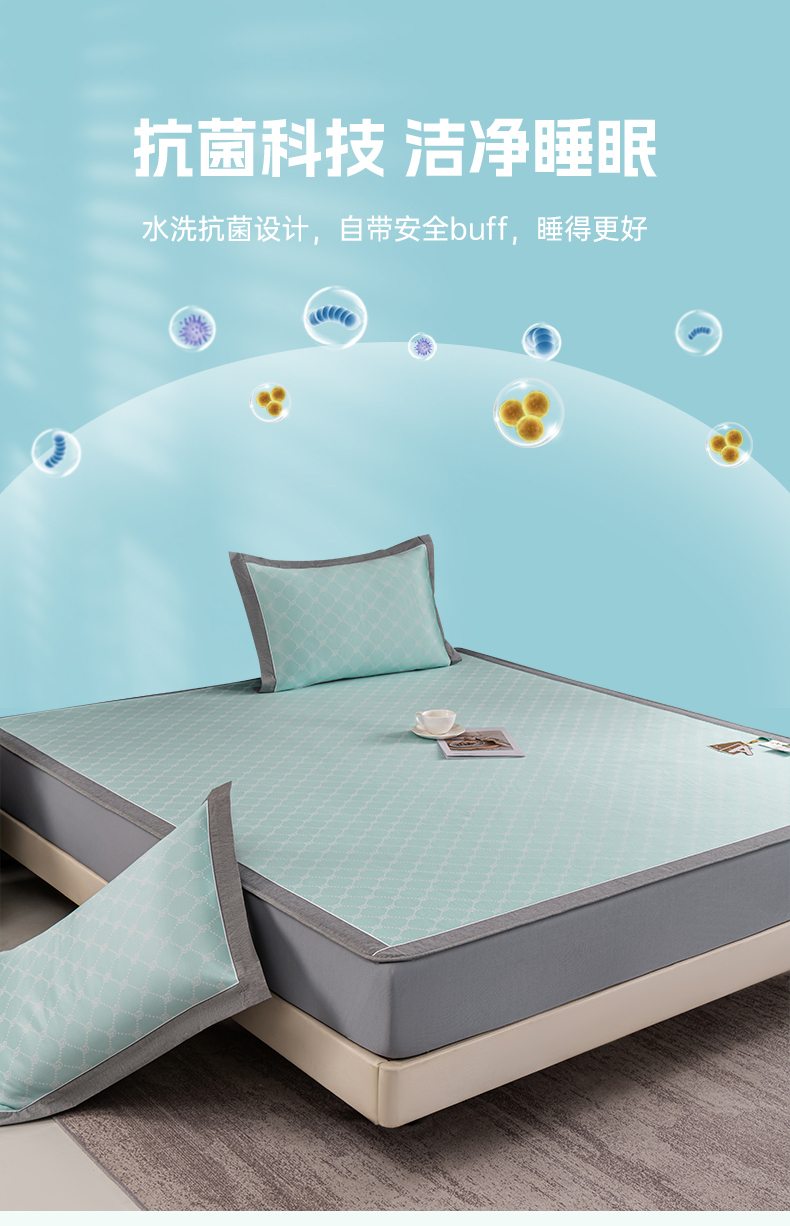 (总)小牛席业 2026新款小冰块大象凉感冰丝席(床笠款)凉席竹席藤席冰藤席乳胶席豆豆席,绿色,粉色,灰色,蓝色,香槟