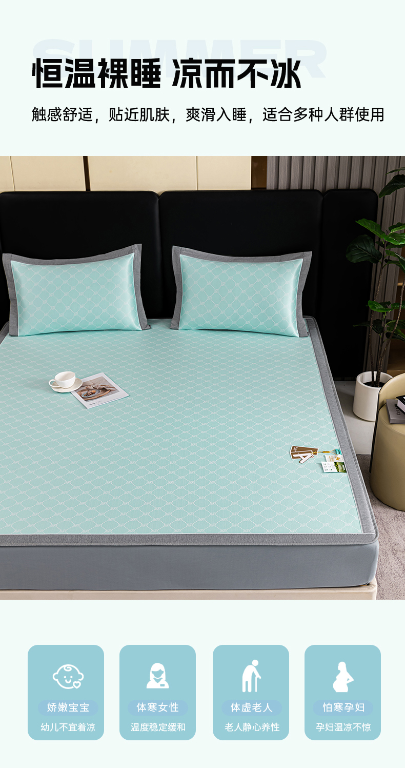 (总)小牛席业 2026春夏新款轻奢半定位凉感冰丝席凉席席子系列床笠款,轻奢半定位-粉色 床笠款,轻奢半定位-灰色 床笠款,轻奢半定位-蓝色 床笠款,轻奢半定位-抹茶 床笠款,轻奢半定位-香槟 床笠款