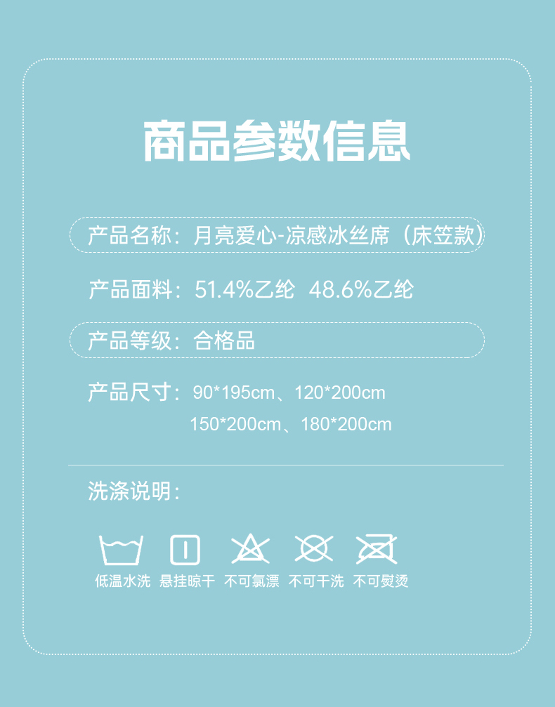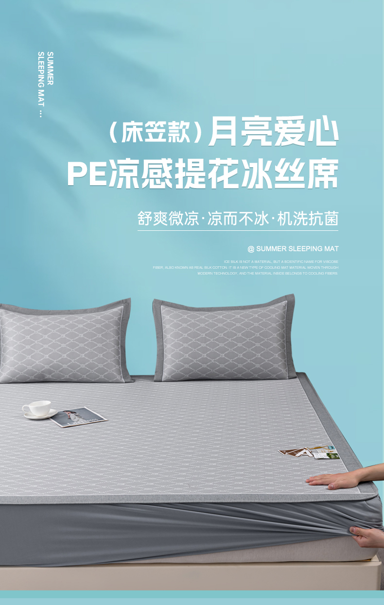 商品名称:小牛席业 2026新款轻奢风-月亮爱心PE凉感冰丝席系列(床笠款)凉席藤席冰藤席冰丝席竹席乳胶席凉感豆豆席 灰色