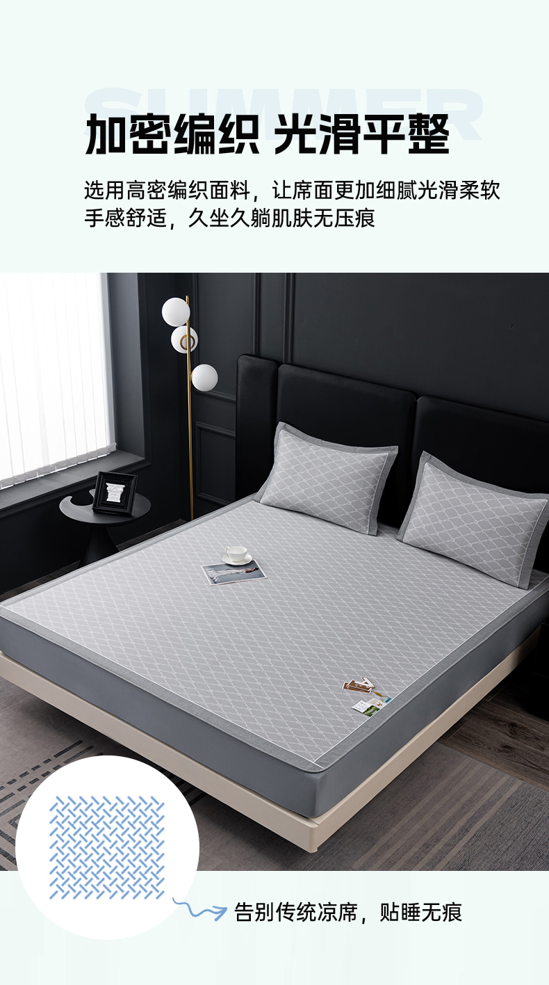 (总)2023新款超精密冰丝席-小斜纹系列-床笠款藤席凉席竹席,粉色,蓝色,绿色,银灰