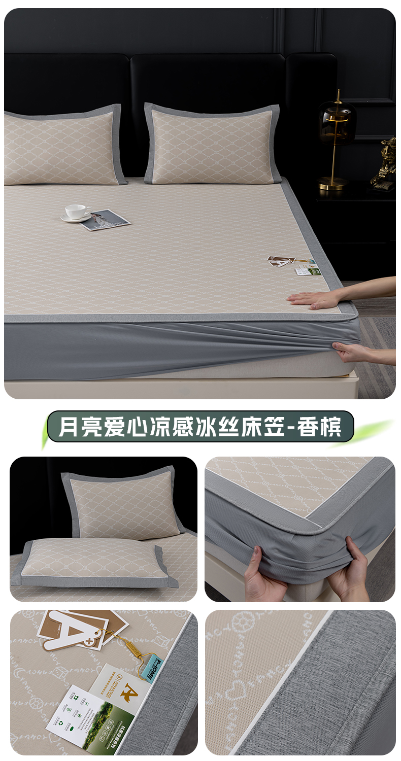 (总)小牛席业 2026春夏新款轻奢半定位凉感冰丝席凉席席子系列床笠款,轻奢半定位-粉色 床笠款,轻奢半定位-灰色 床笠款,轻奢半定位-蓝色 床笠款,轻奢半定位-抹茶 床笠款,轻奢半定位-香槟 床笠款