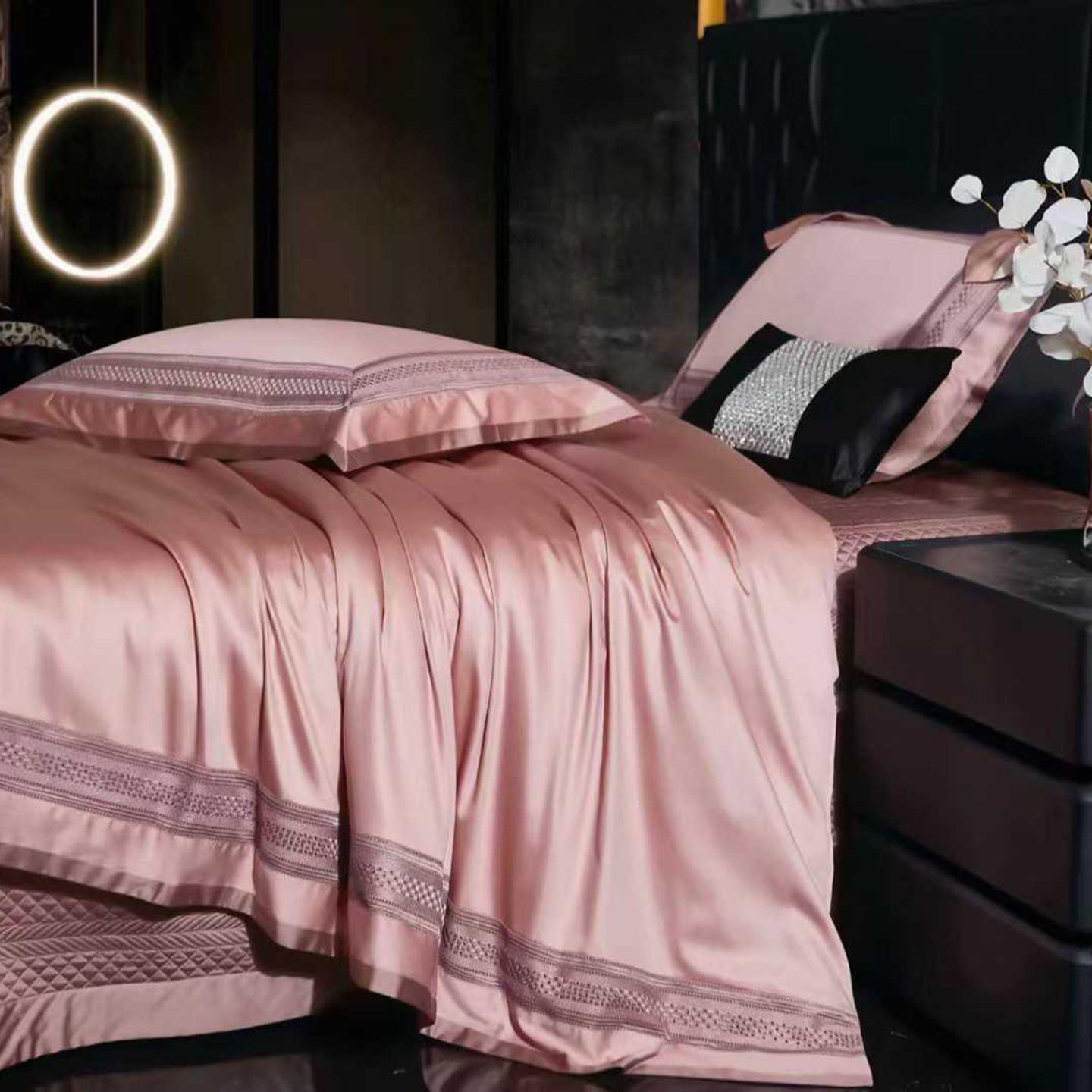 (总)edra 2026新款真丝天丝轻奢提花床盖款四件套-拉斐尔,香槟白,粉,银灰,金咖,蓝