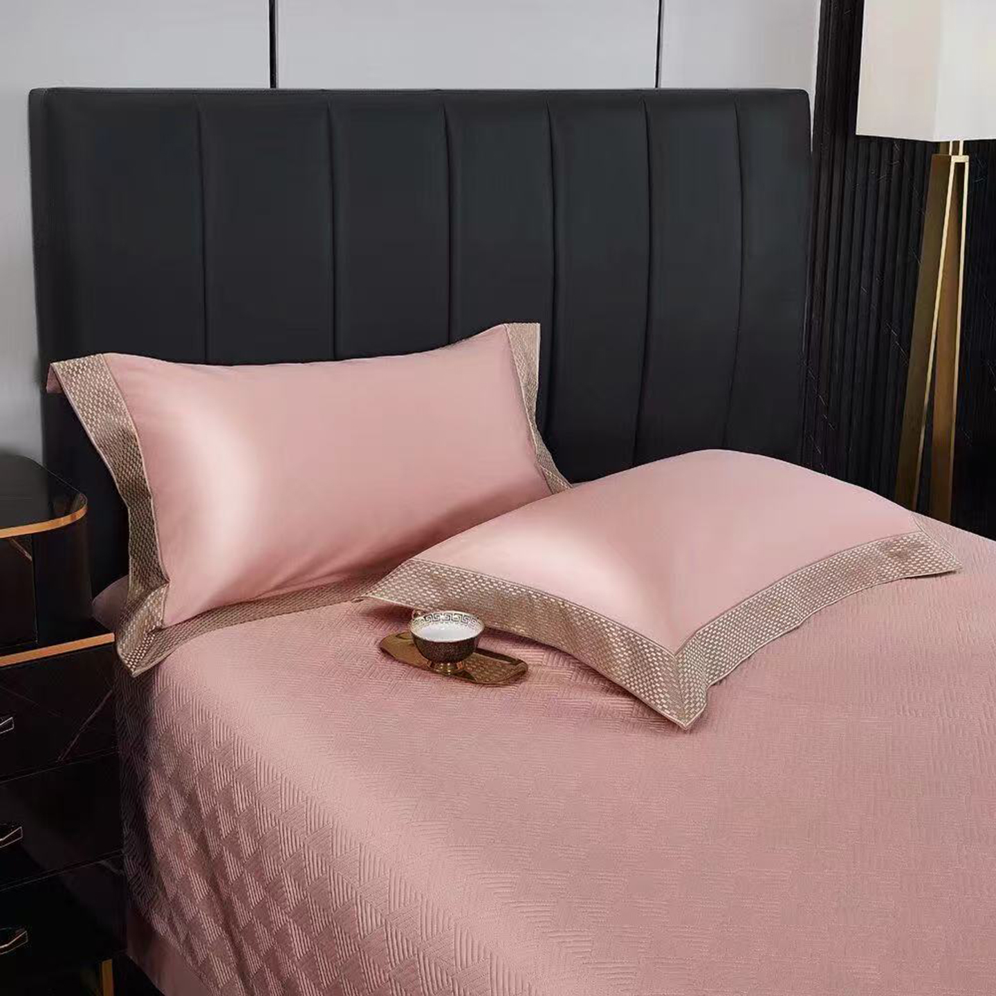 (总)edra 2026新款真丝天丝轻奢提花床盖款四件套-拉斐尔,香槟白,粉,银灰,金咖,蓝