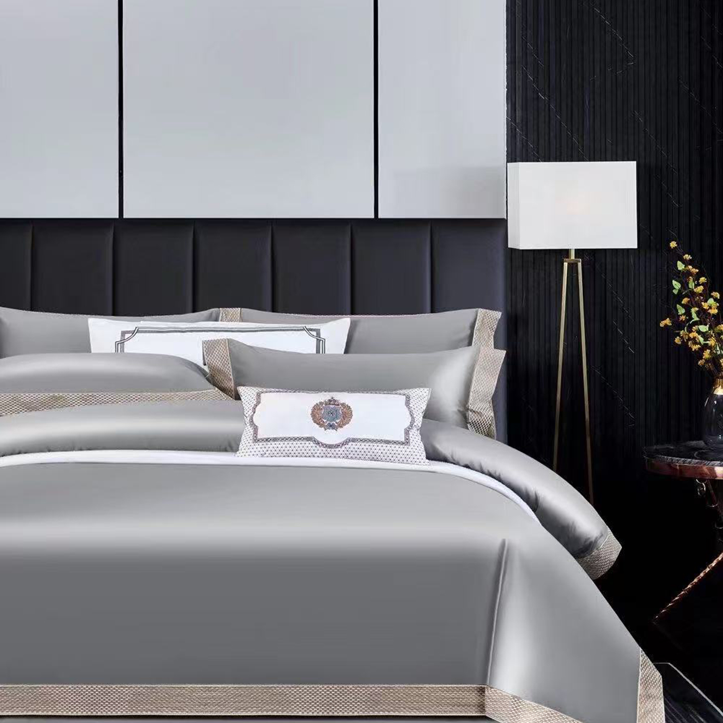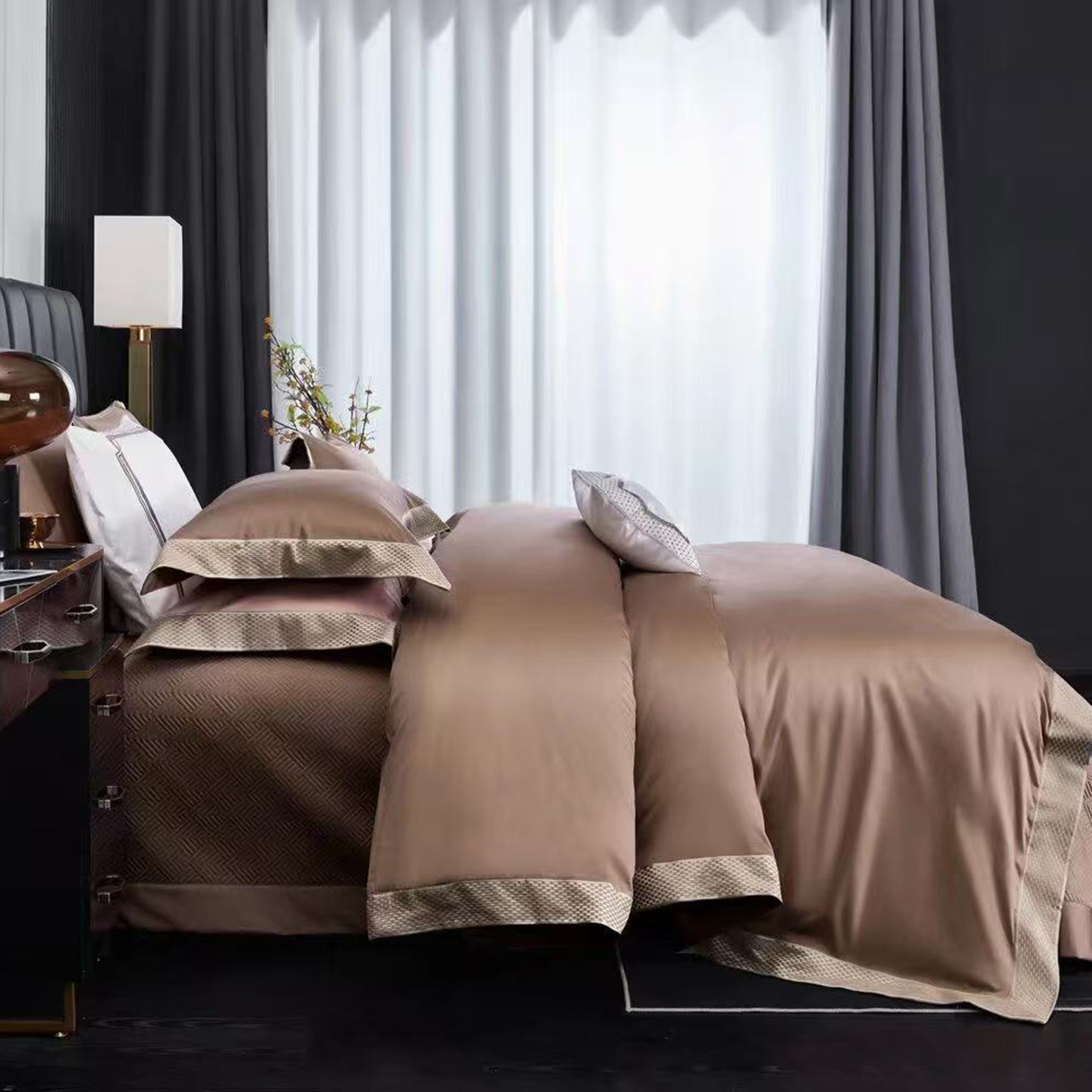 (总)edra 2026新款真丝天丝轻奢提花床盖款四件套-繁花,繁花-深灰,繁花-银灰