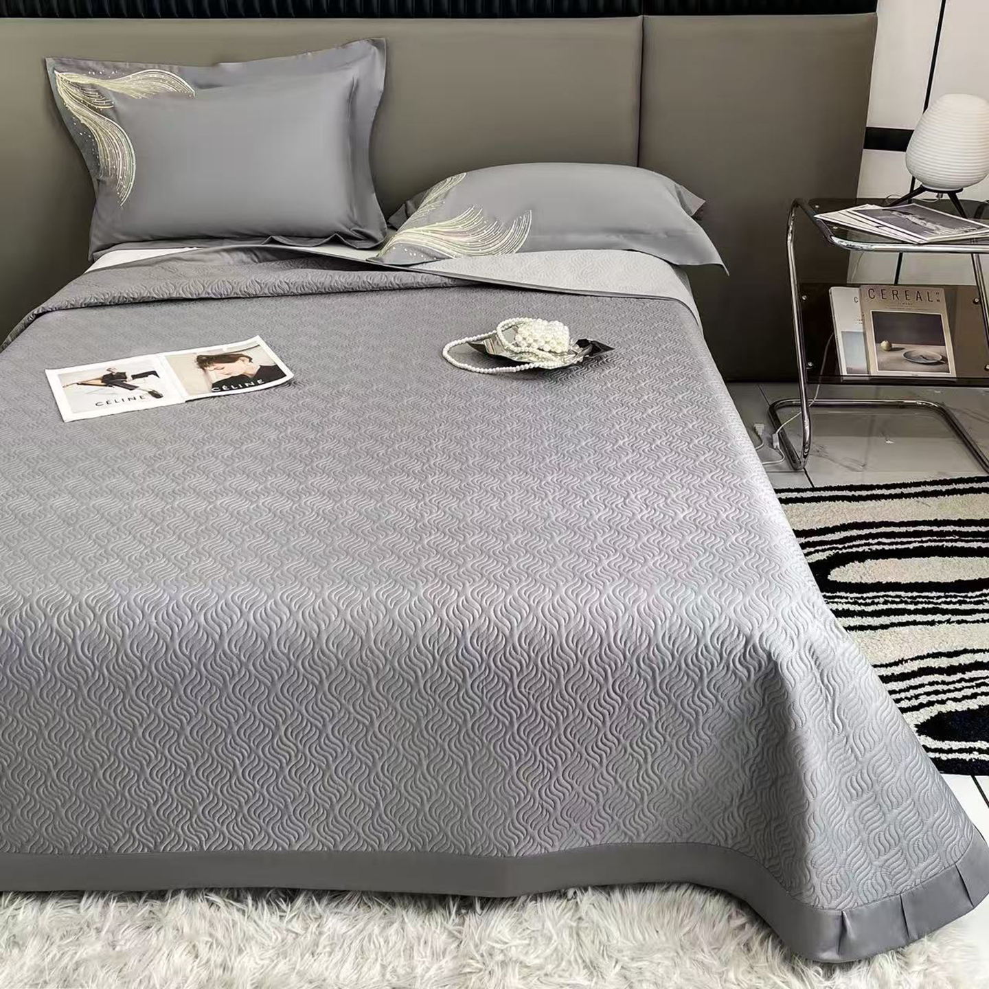 (总)edra 2026新款真丝天丝轻奢提花床盖款四件套-繁花,繁花-深灰,繁花-银灰