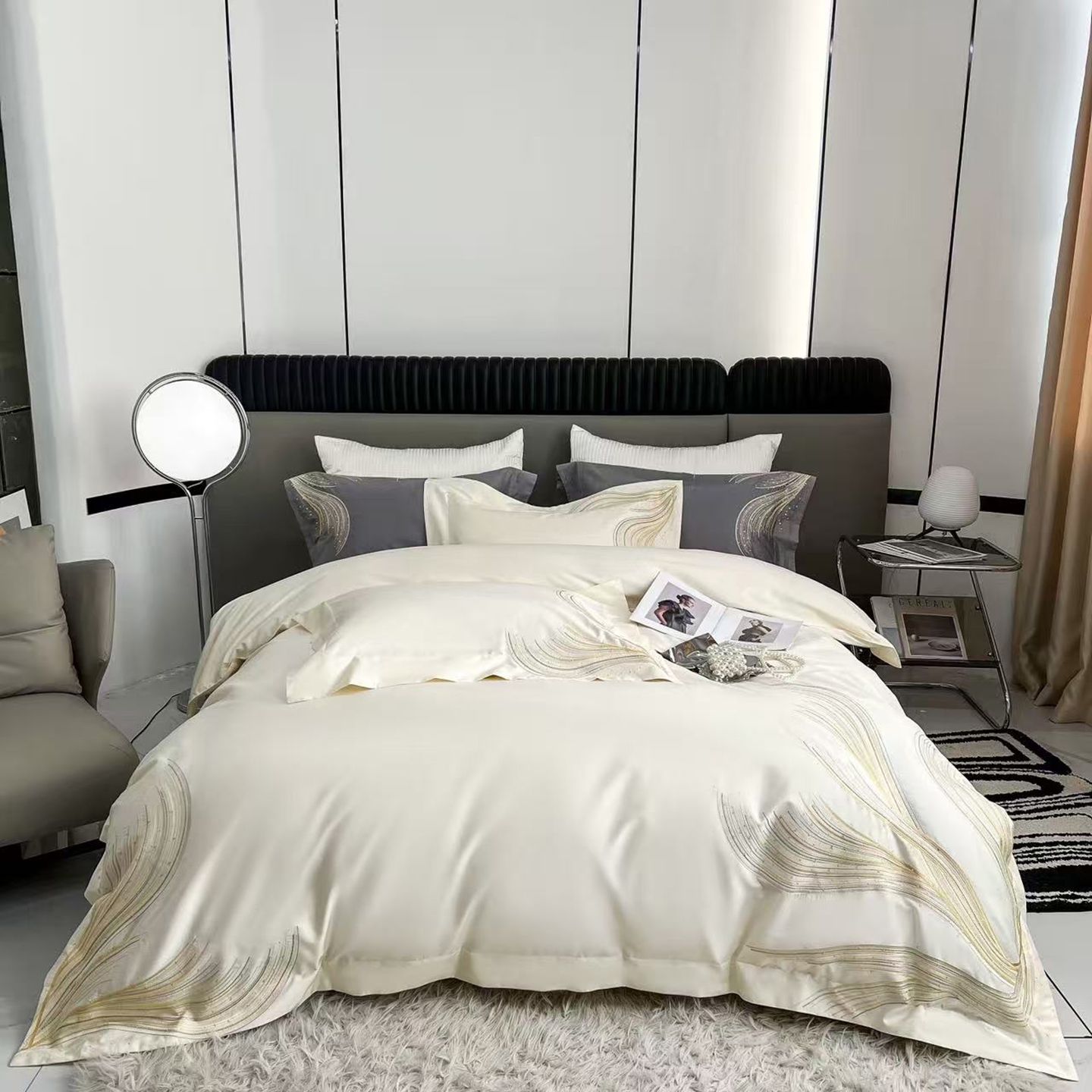 商品名称:(总)edra 2026新款纯棉长绒棉轻奢刺绣床盖款四件套-北极光