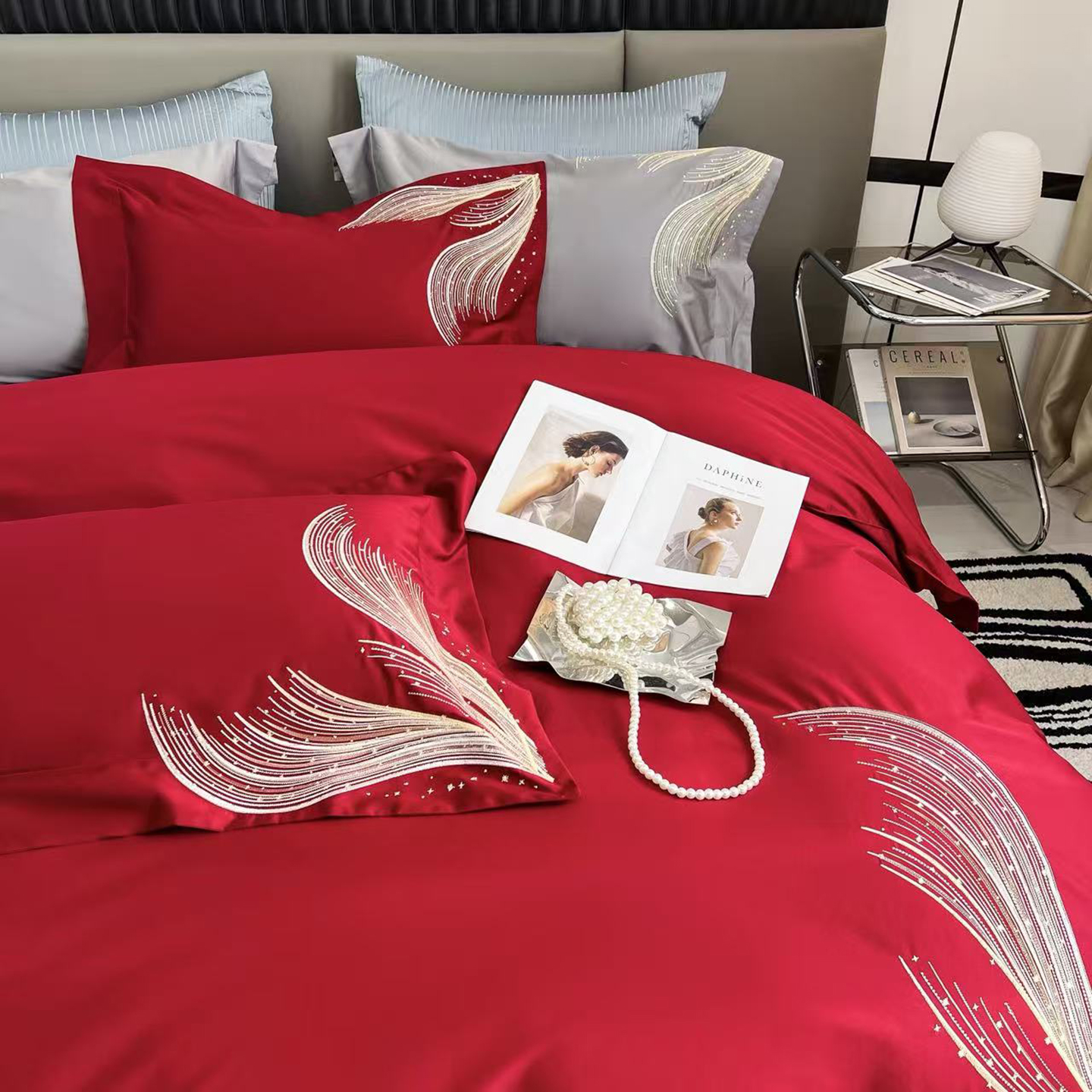 (总)edra 2026新款纯棉长绒棉轻奢刺绣床盖款四件套-蝴蝶,蝴蝶红,蝴蝶粉,蝴蝶灰,蝴蝶奶白,蝴蝶紫