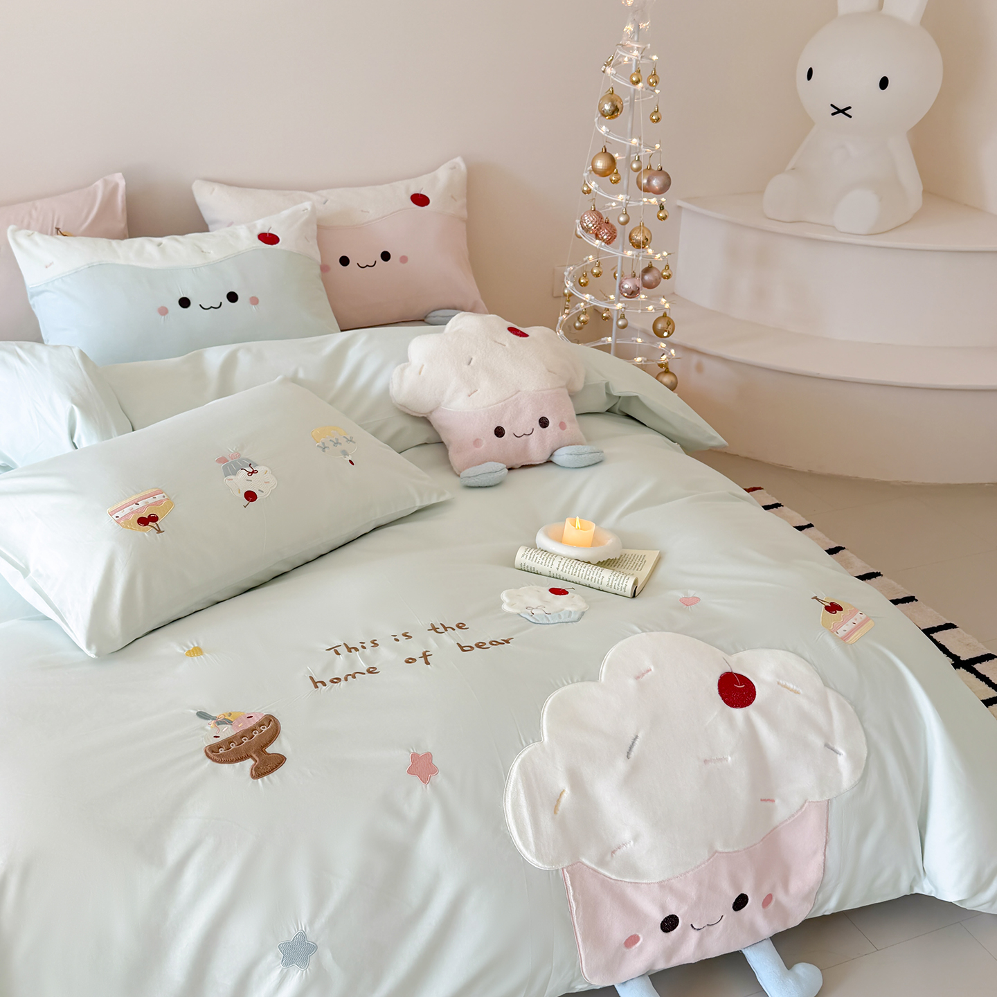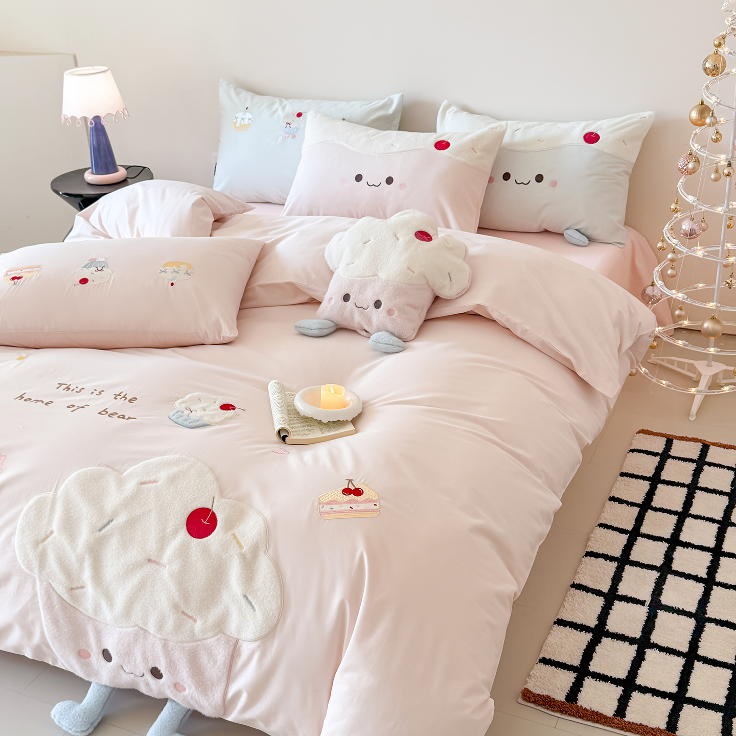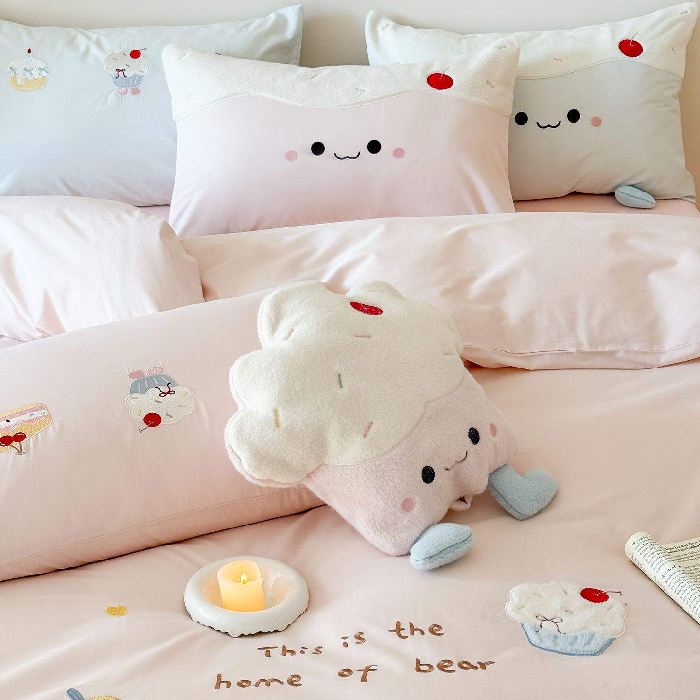 (总)嗨购家纺 2026新款40S水洗棉贴布刺绣四件套-半糖萌新系列(送同款抱枕 淘宝劵后控价:小号298元 标准348元 大号368元),半糖萌新-粉,半糖萌新-蓝
