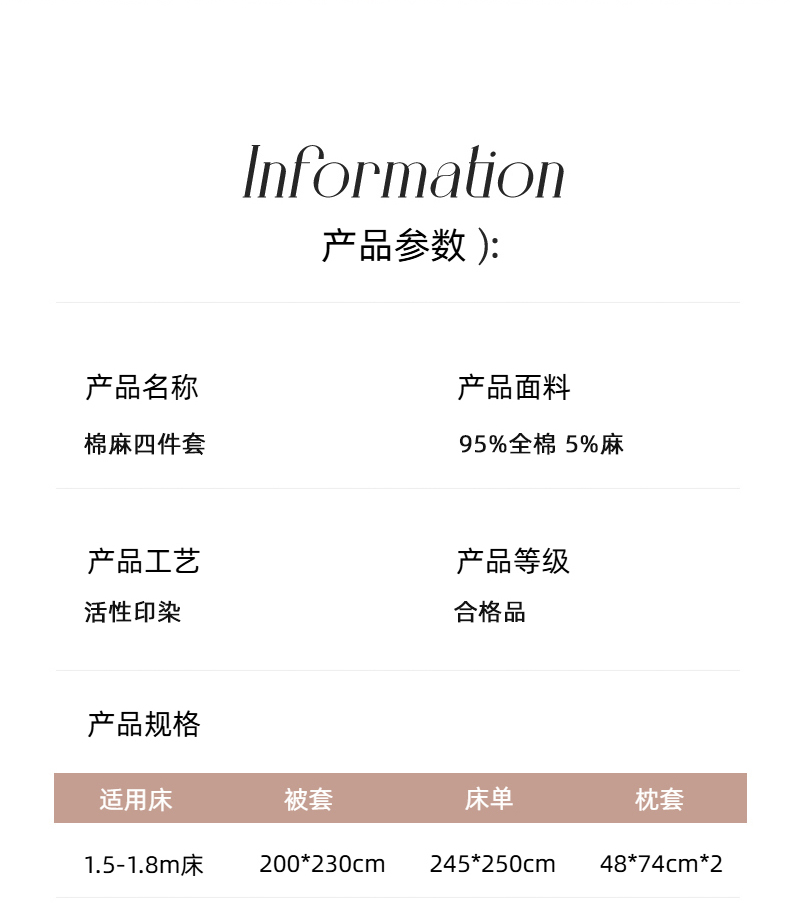 商品名称:大彩家居 2026春夏新款棉麻印花四件套 午后庄园