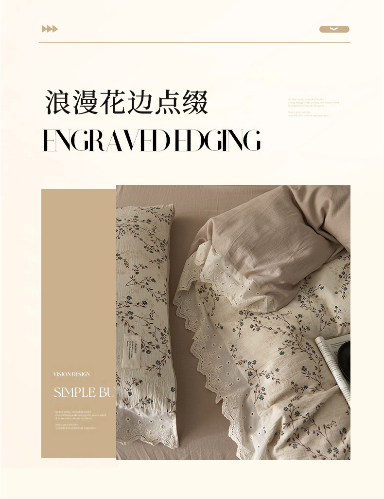 大彩家居 2026春夏新款棉麻印花四件套 午后庄园