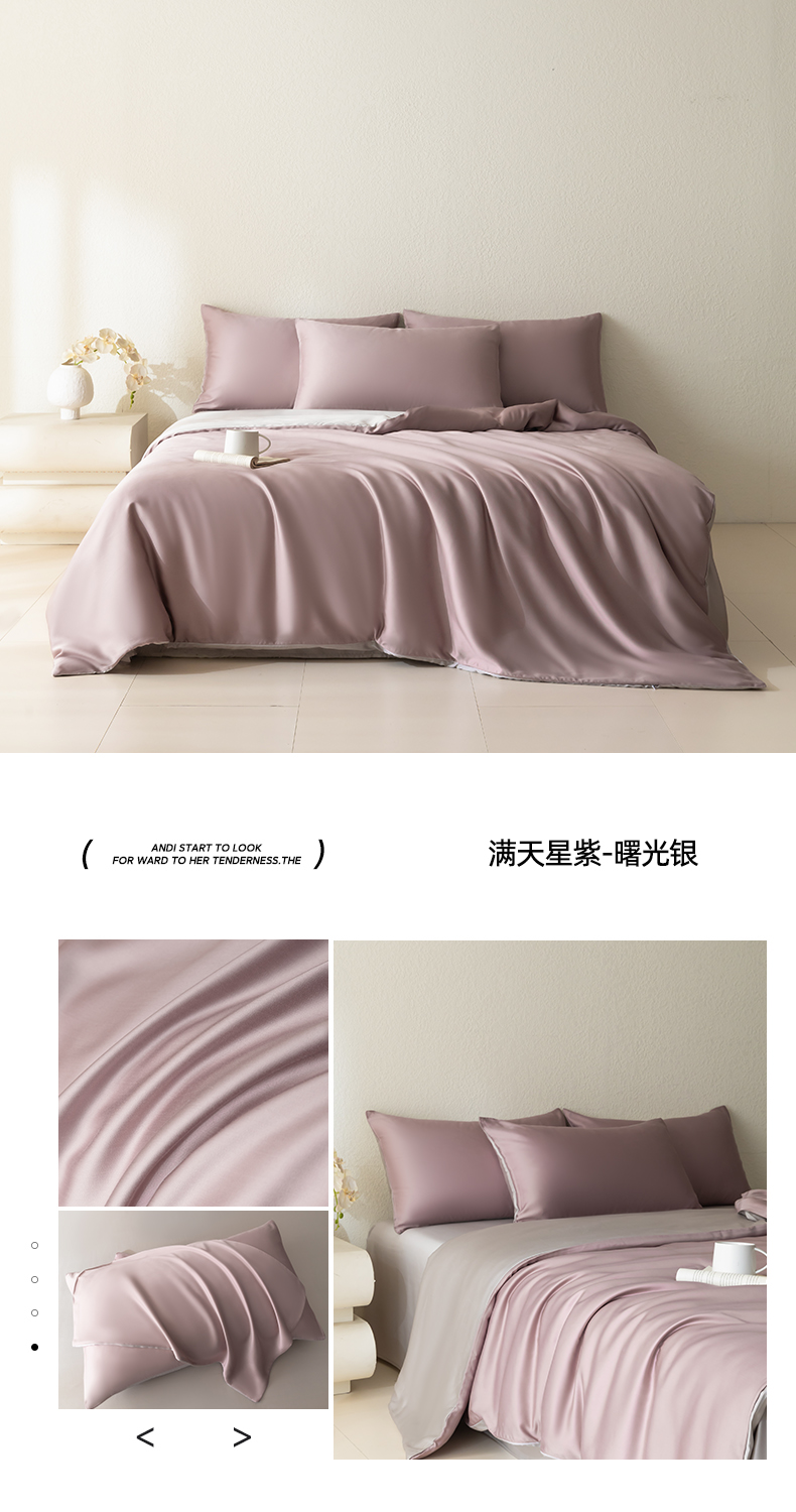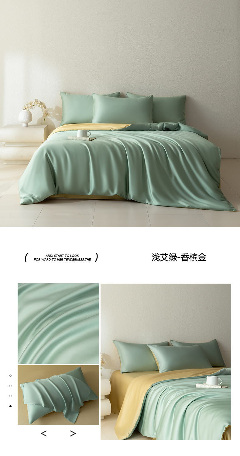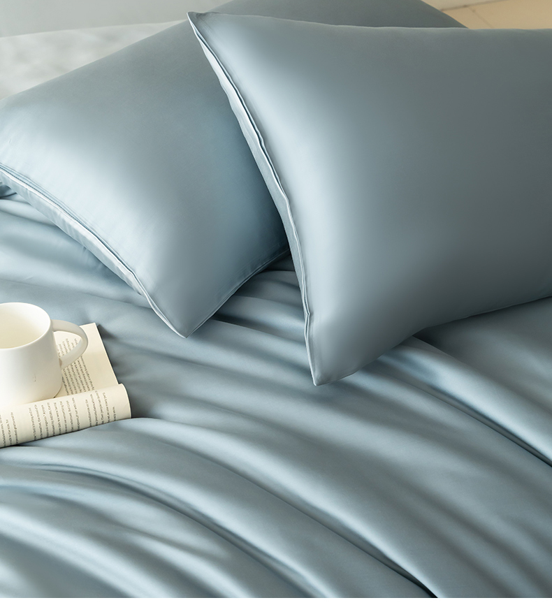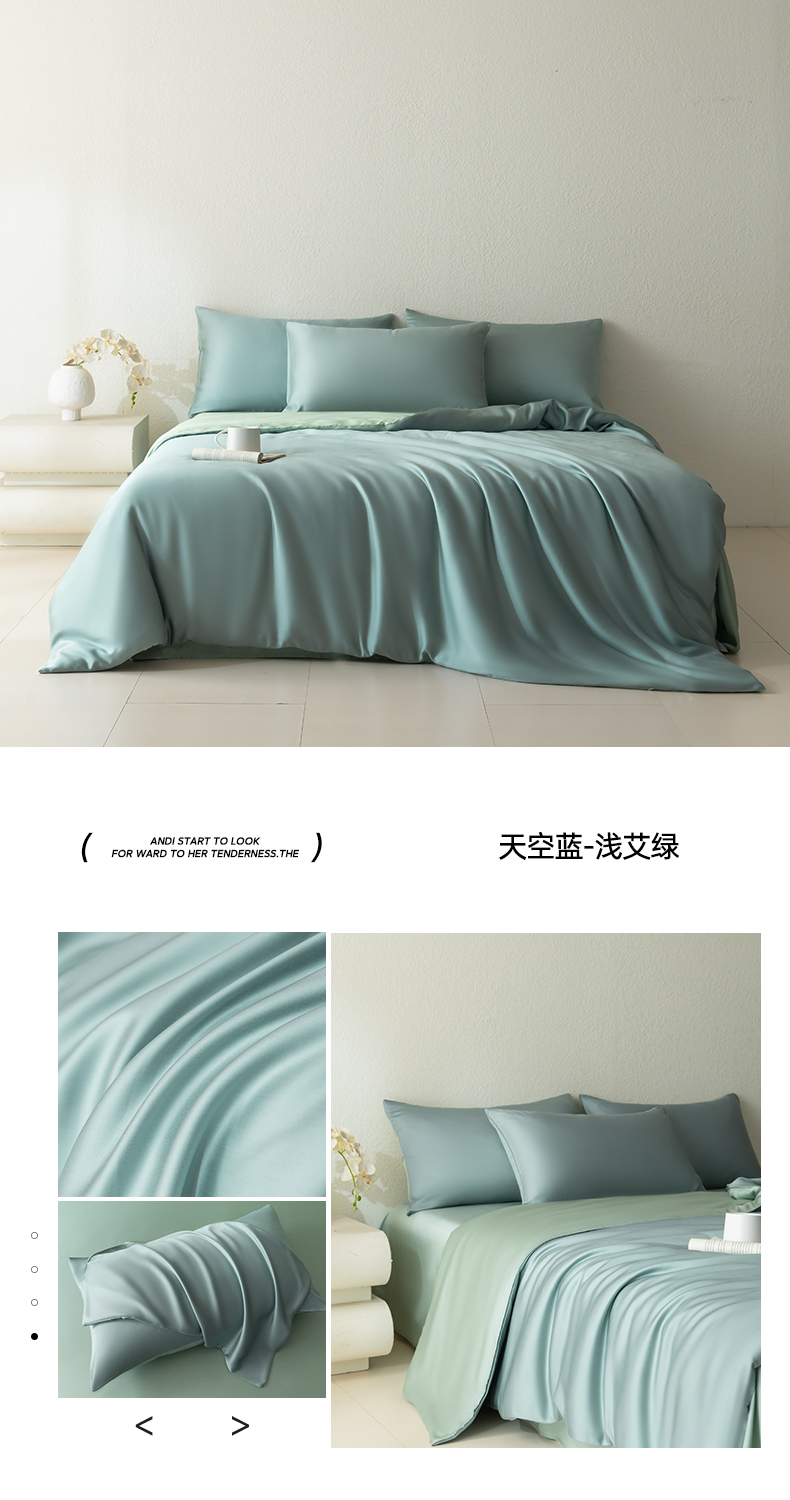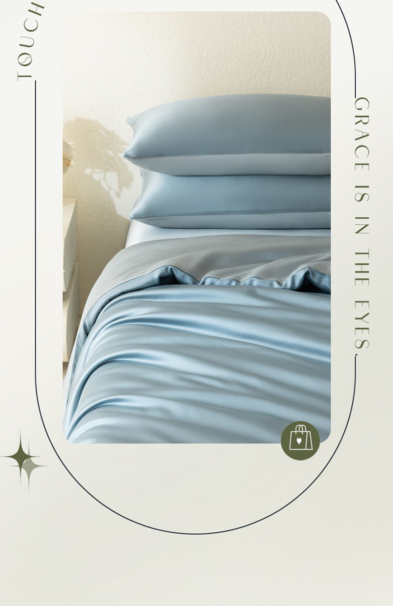 当前位置: 91家纺网 > 商品网购 > 床品套件 > 四件套 > 莱赛尔四件套 > 禾时 2026新款60支奥地利兰精双拼纯色天丝四件套 天青色-香槟金