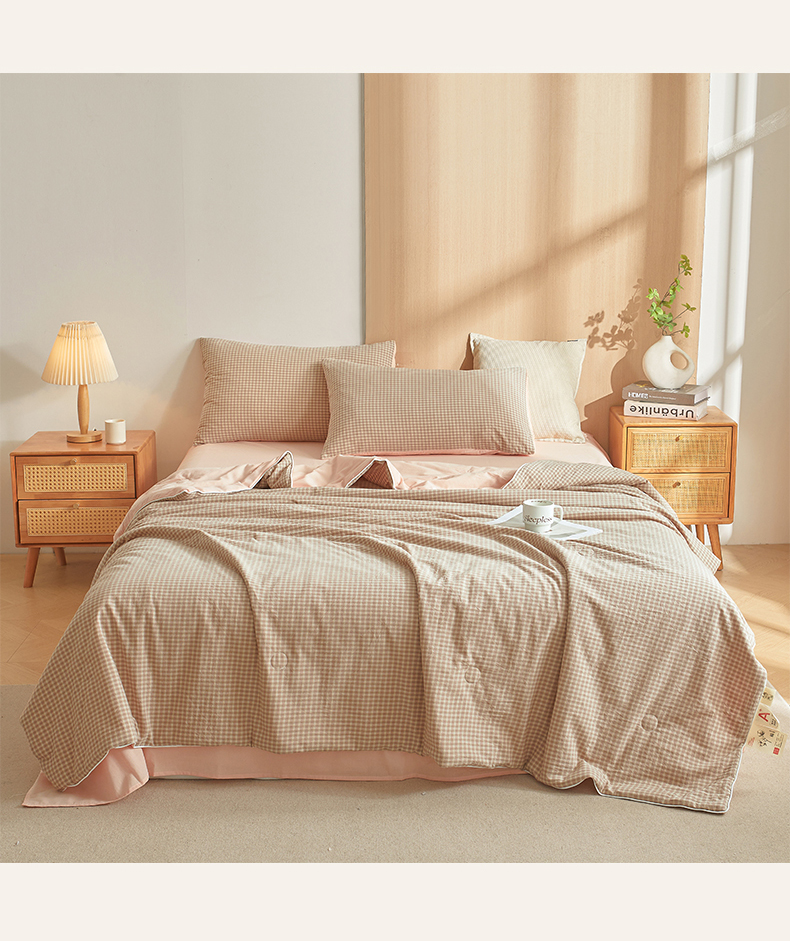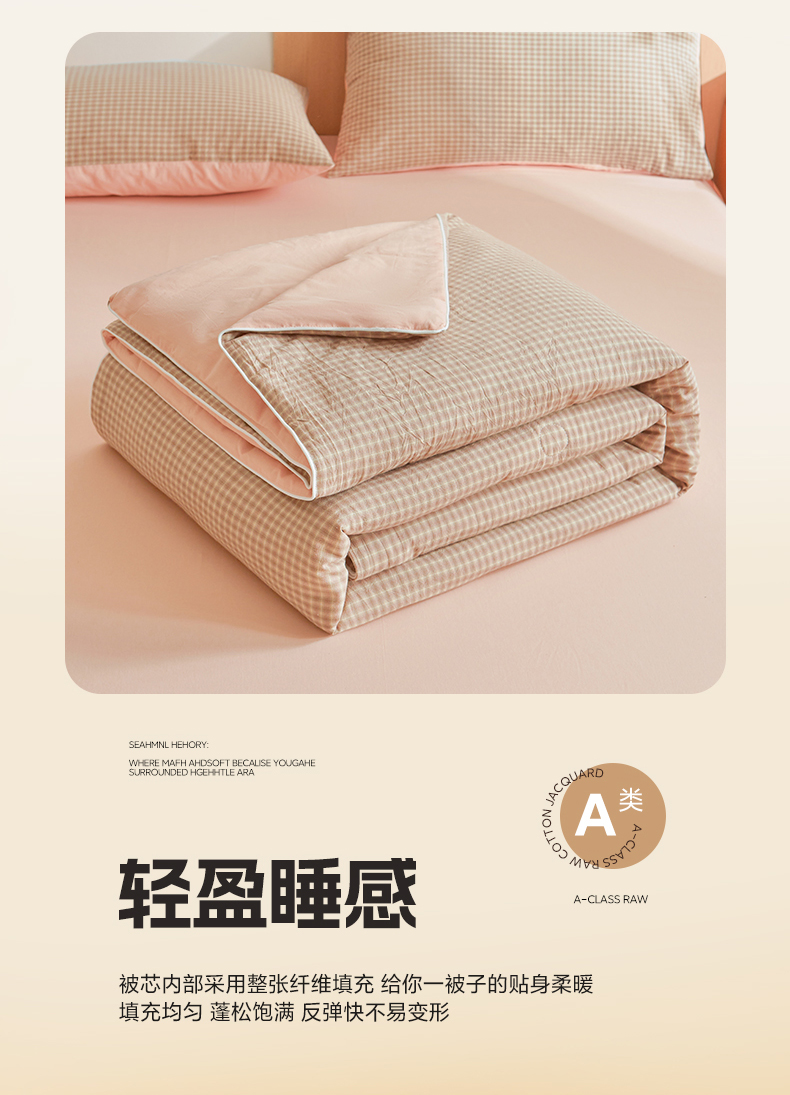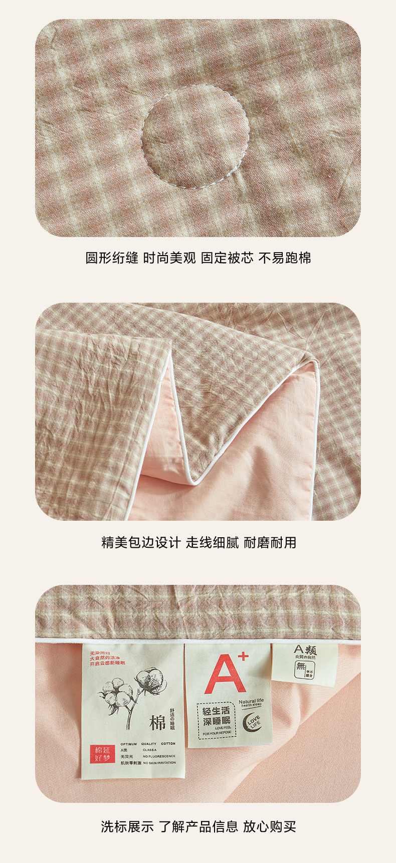 商品名称:金喜 2026新款A类全棉色织水洗棉夏被夏凉被 琥珀粉