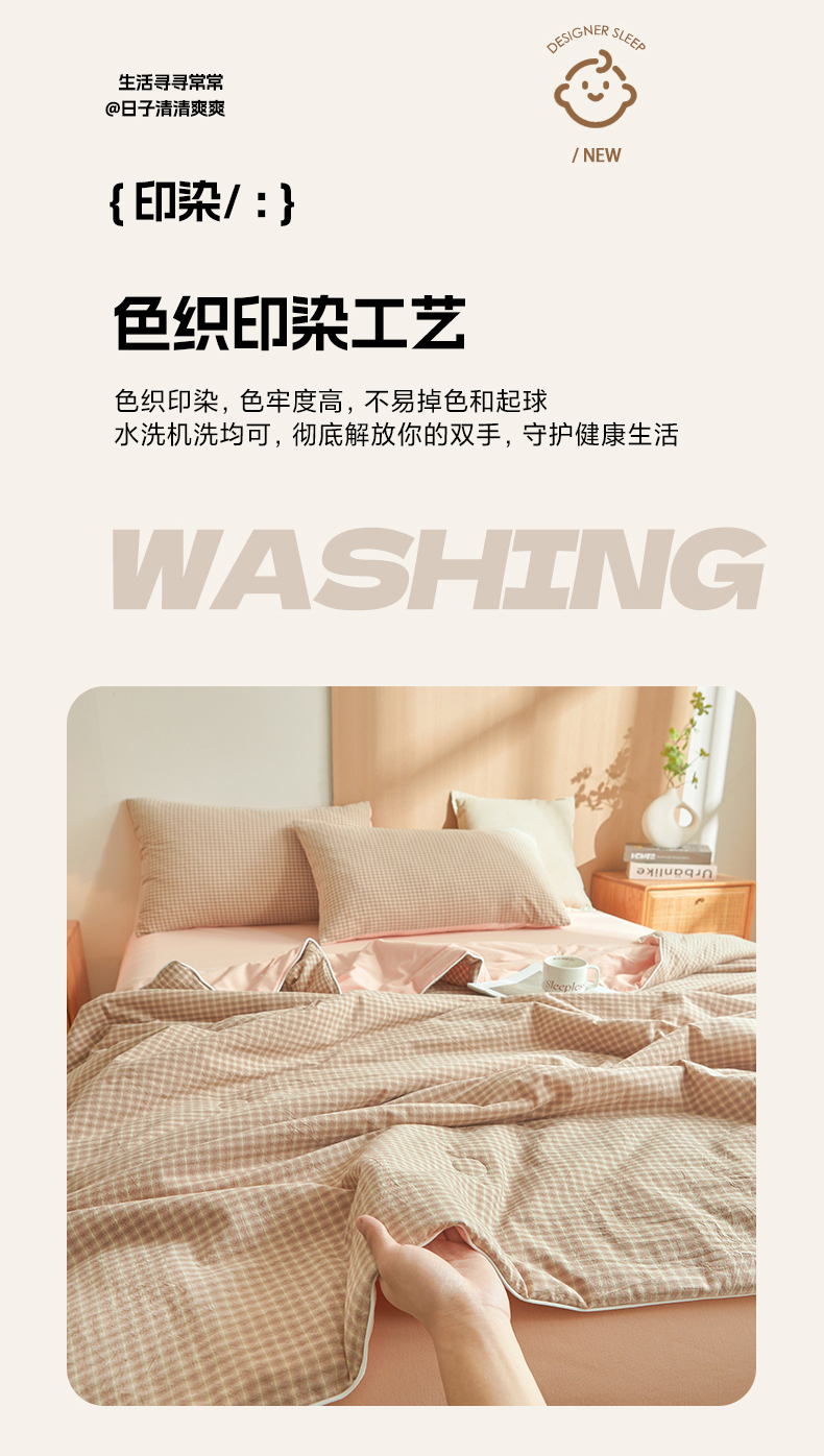 (总)金喜 2026新款A类全棉色织水洗棉夏被夏凉被,低调米,朵拉咖,琥珀粉,焕花灰,柠檬粉,柠檬兰