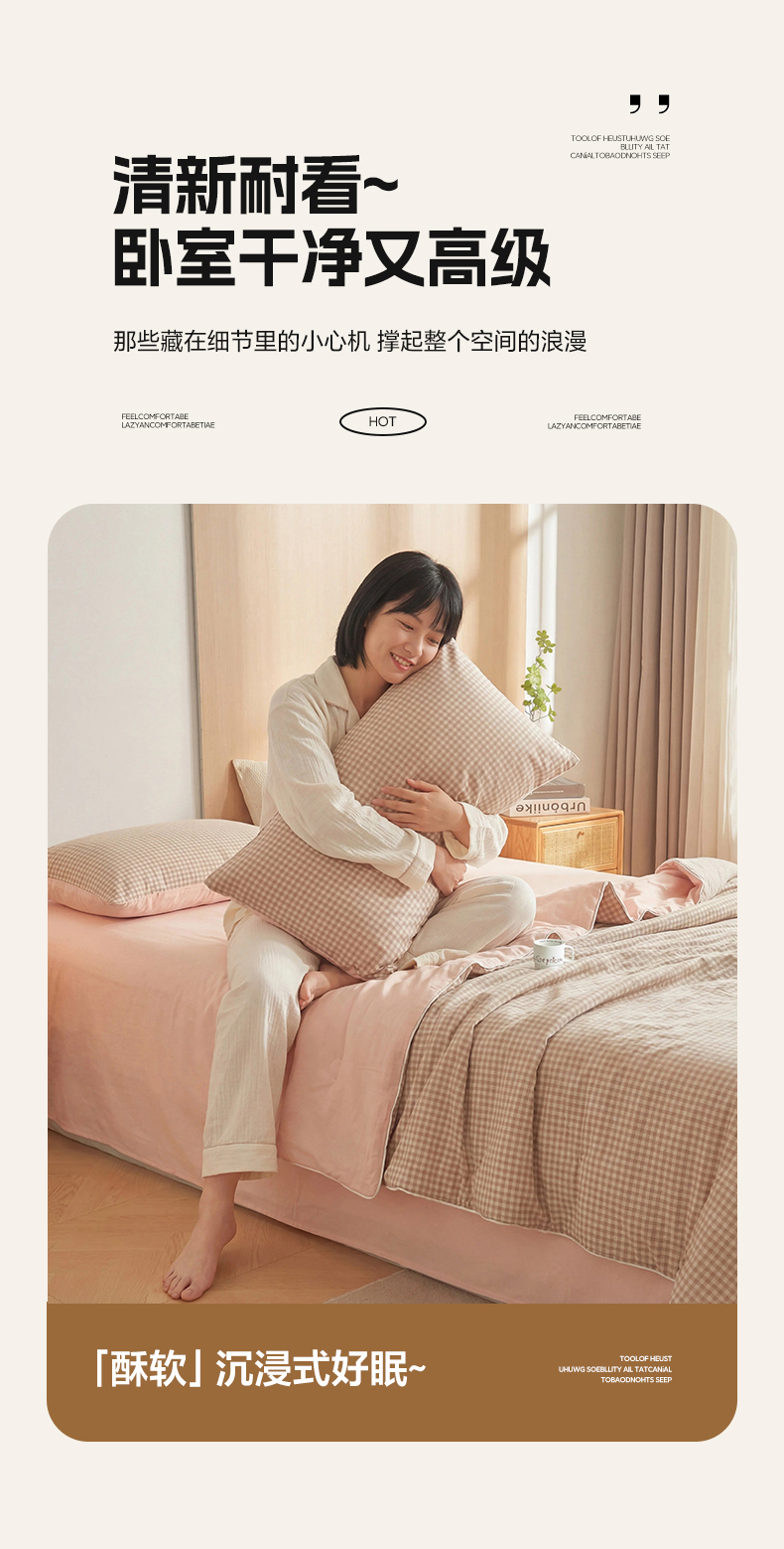 (总)金喜 2026新款A类全棉色织新疆棉夏被四件套,低调米,朵拉咖,琥珀粉,焕花灰,柠檬粉,柠檬兰