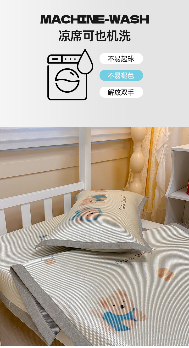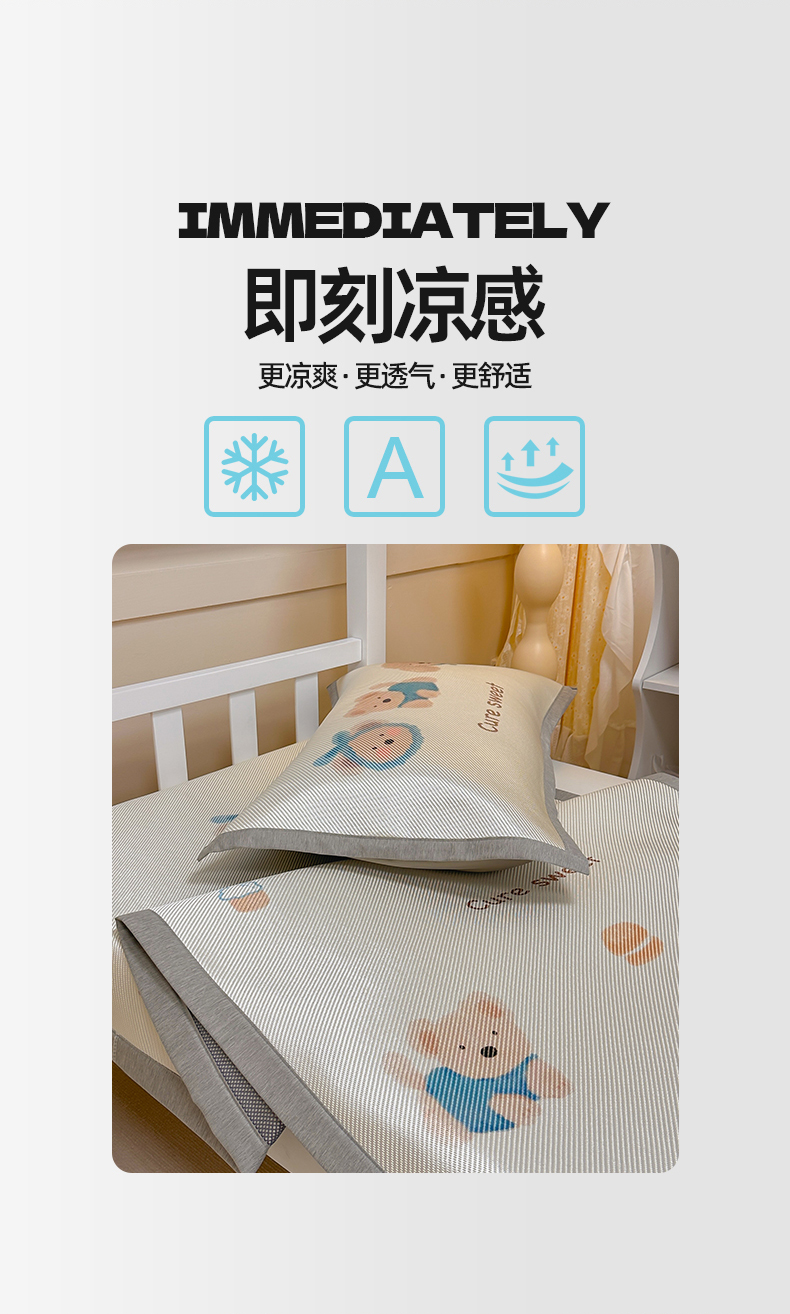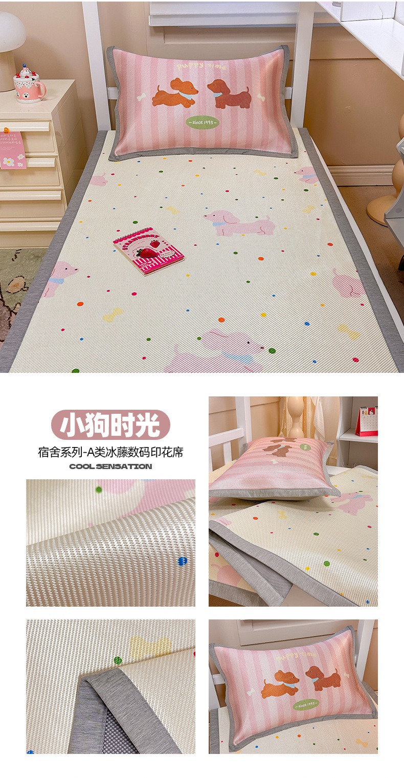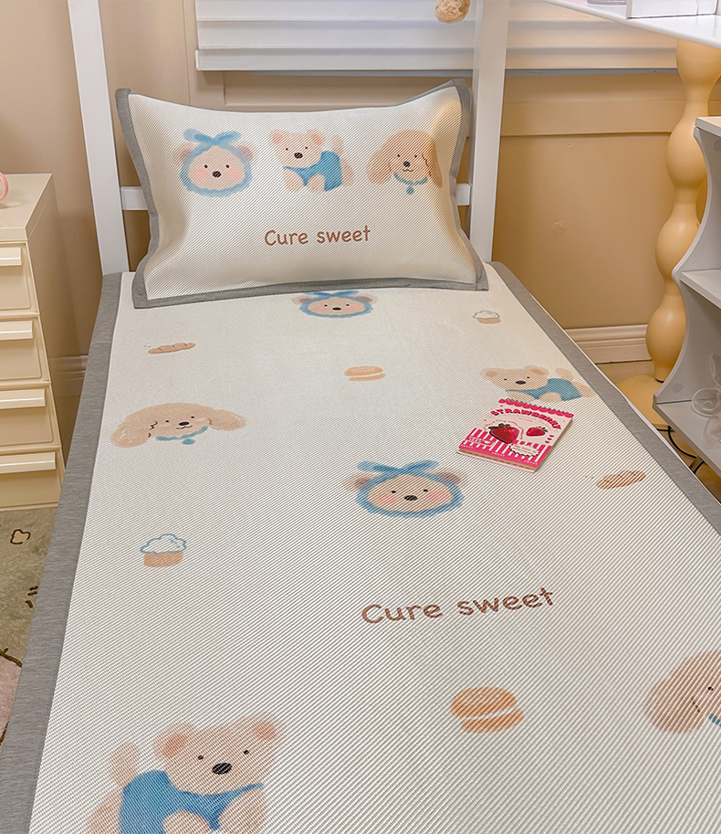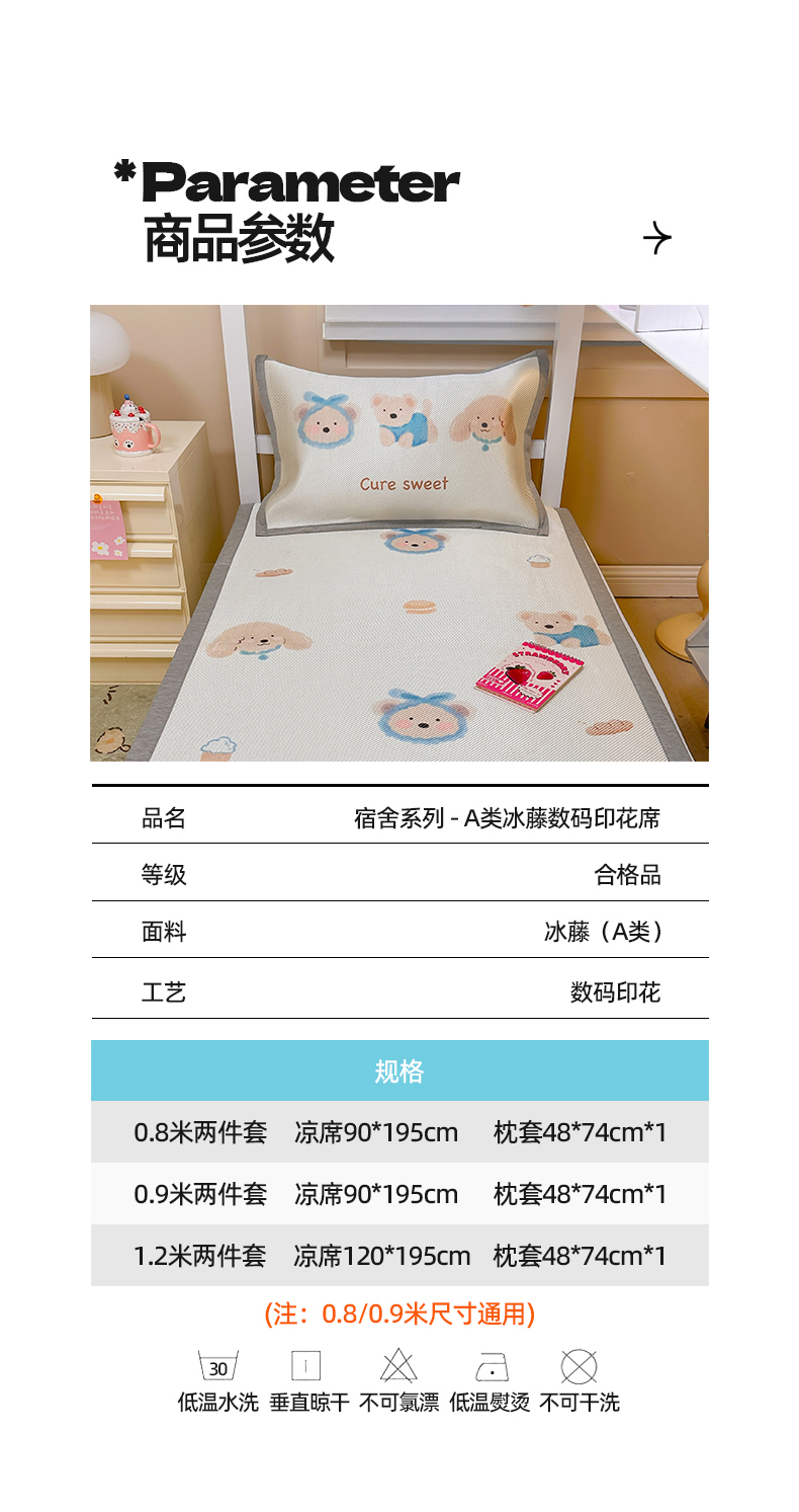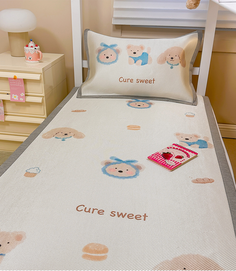 商品名称:懒猫家纺 2026新款600D数码印花大版学生宿舍冰藤凉席 温柔小熊