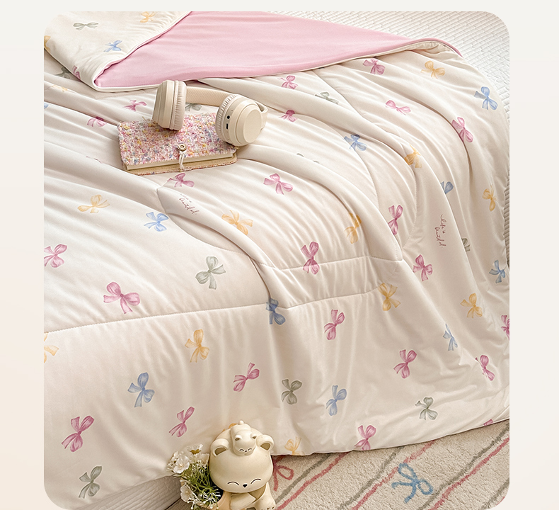商品名称:鑫琪莱家纺 2026新款印花冰皮软心凉凉被夏被 半夏彩蝶-粉