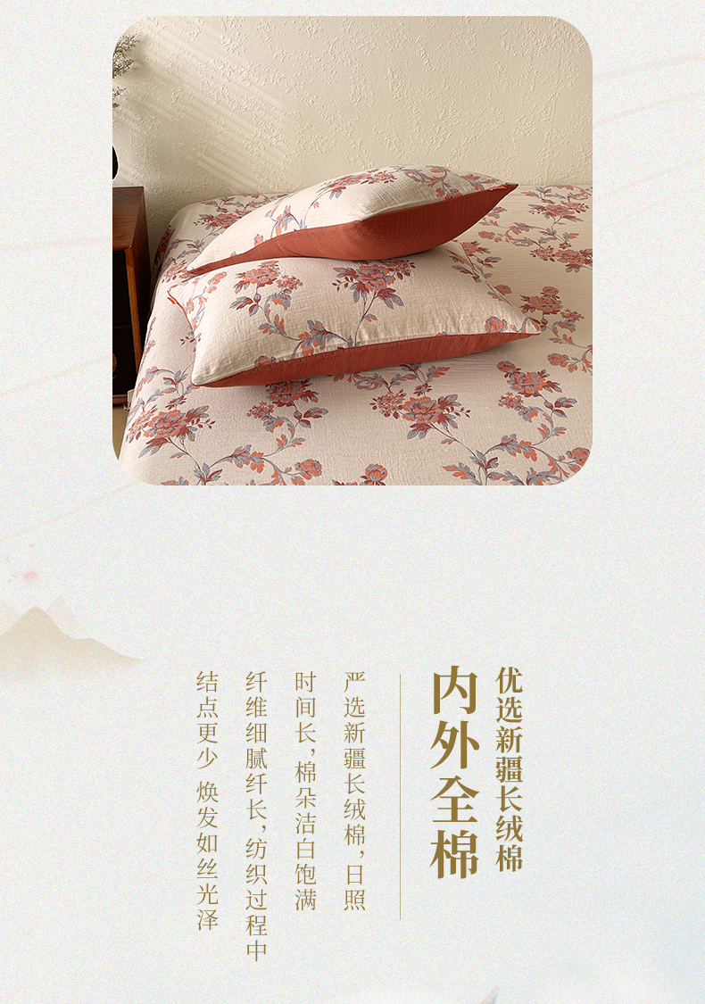 商品名称:春皖家纺 2026新款全棉纯棉拉链款双层纱枕套单枕套枕套单件 一丈红