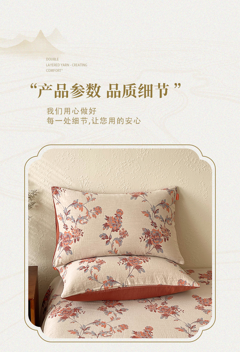 (总)春皖家纺 2026新款全棉纯棉拉链款双层纱四件套,百灵斯顿,夏洛克绿,一丈红,雪花飘,春光灿烂,绮帐-红,绮帐-粉,花漾兰,月临
