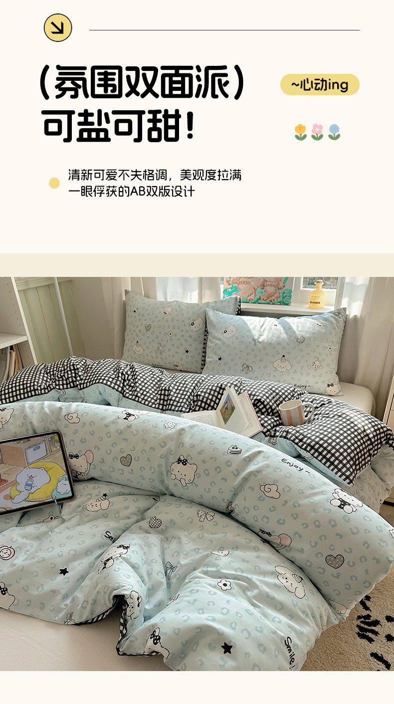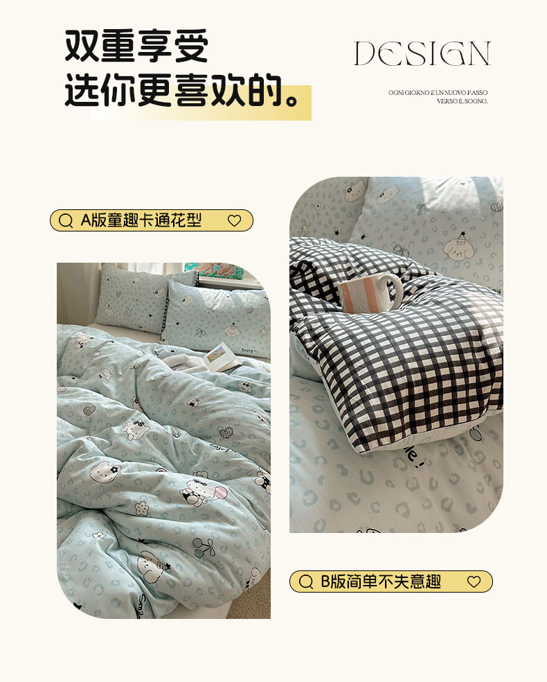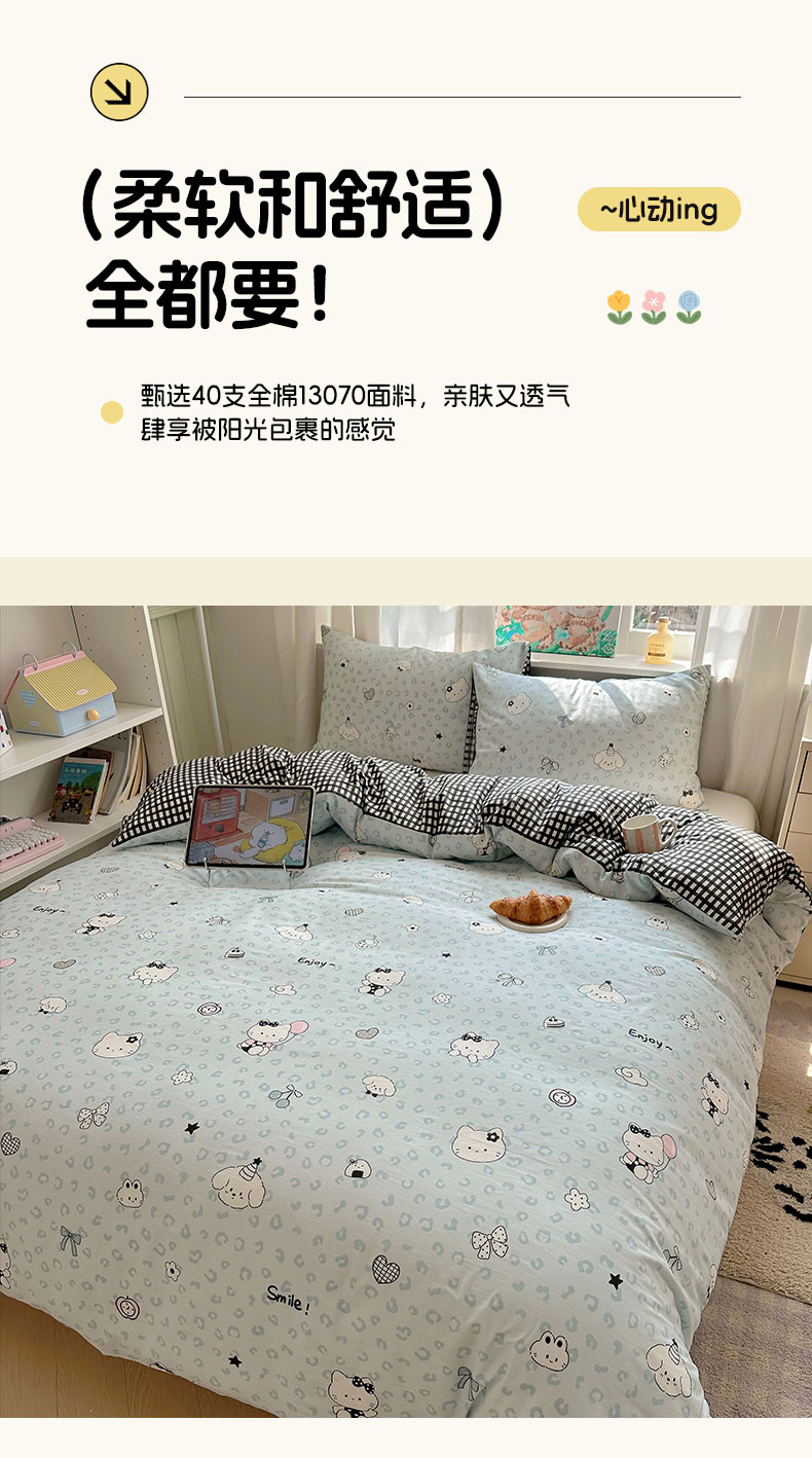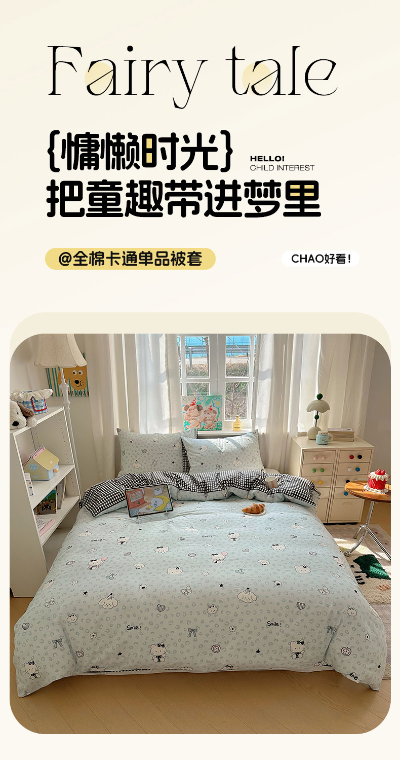 (总)六巷胡同 2025新款INS童趣可爱风卡通全棉四件套-第四系,彩虹甜筒猫,草莓害羞喵,粉格元气猫,咖格樱桃狗,蓝格嗨皮狗,圣诞麋鹿狗,仙人掌粉象,熊熊猫咪崽