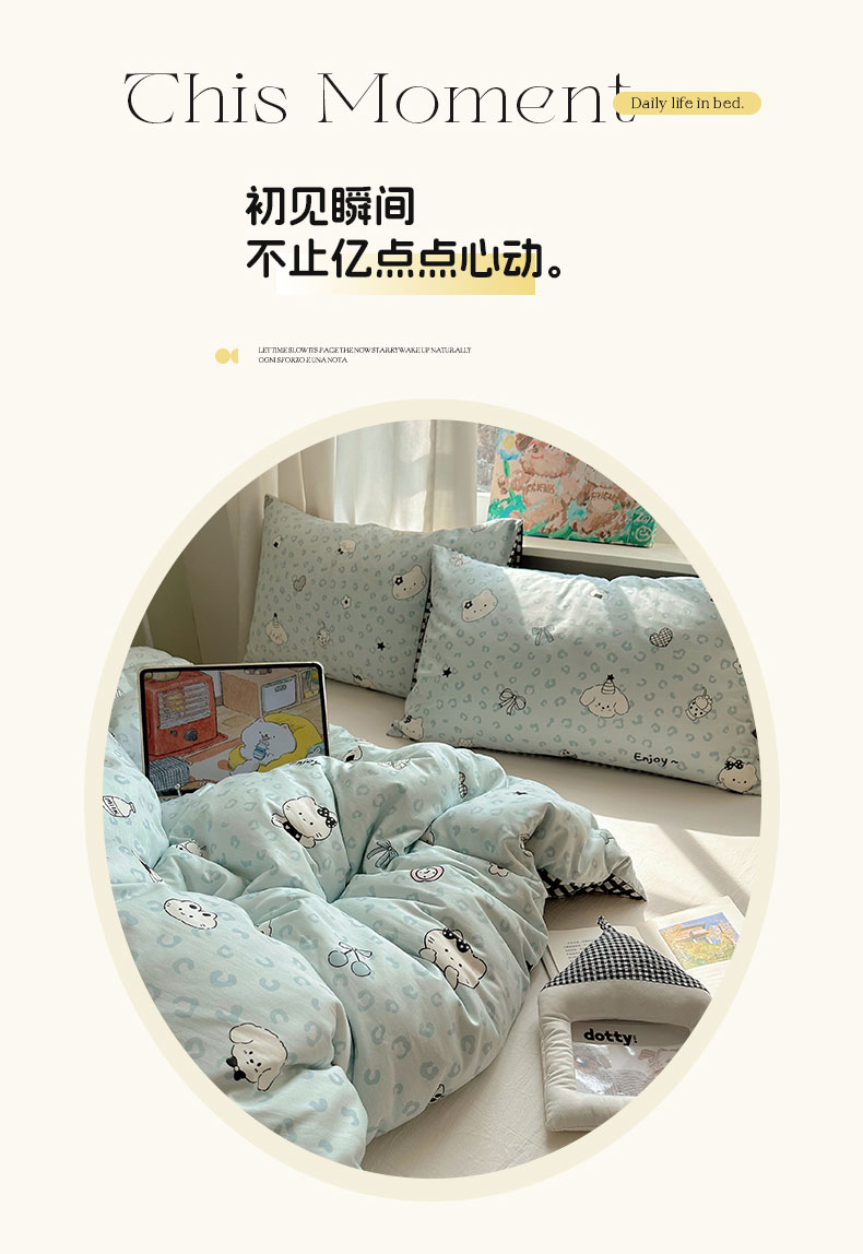 (总)六巷胡同 2025新款 INS减龄可爱风卡通全棉四件套第五系(森林音乐会系列),波点嘟嘟猫,点点面包犬,调皮蔷薇狗,哈喽泡芙猫,蓝格插画犬,森林音乐会