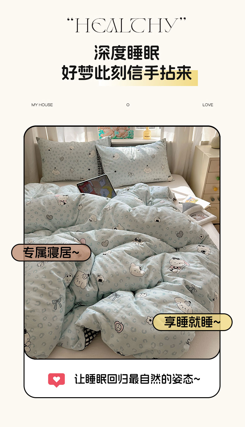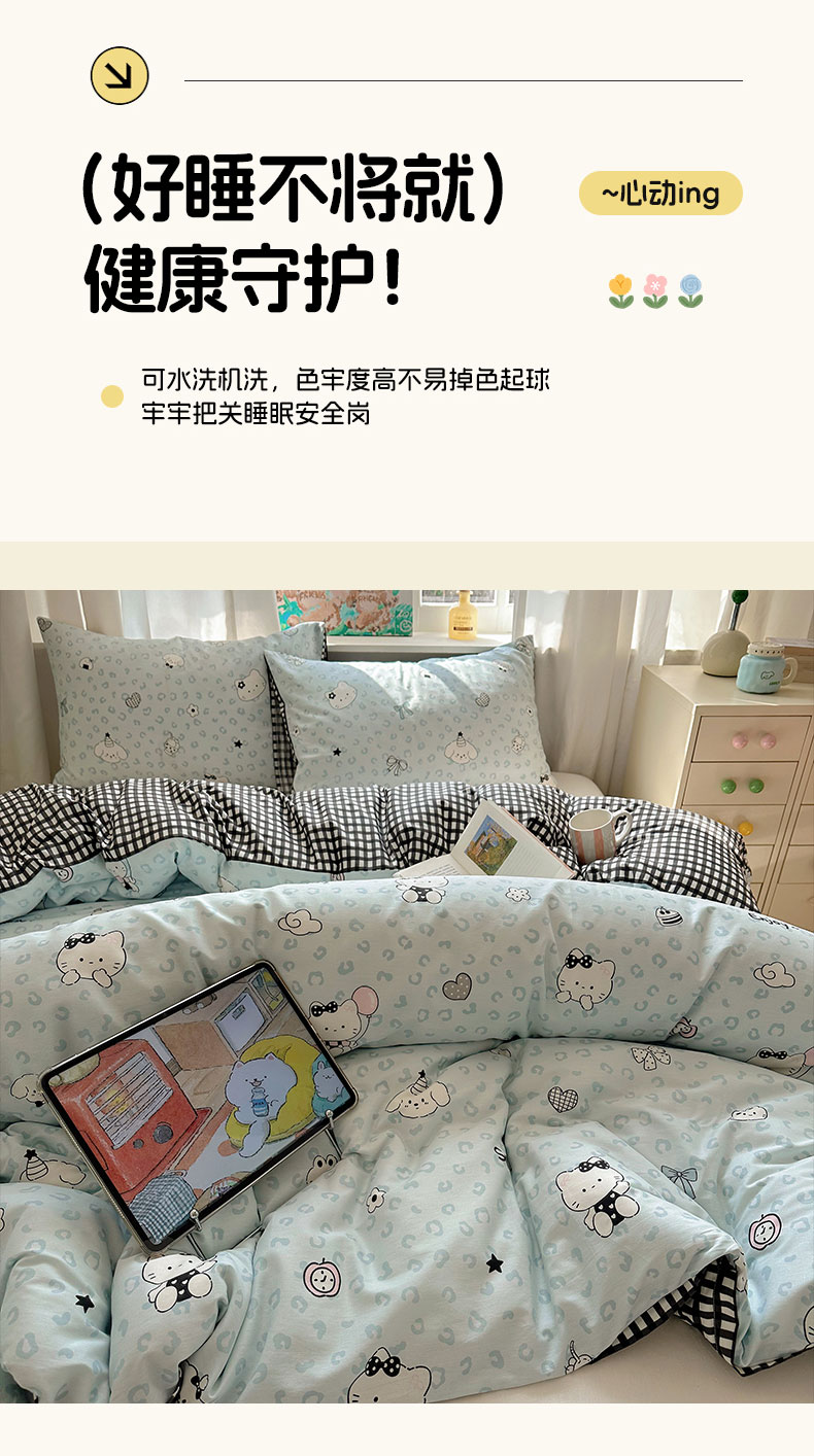 (总)六巷胡同 2025新款INS卡通童趣混搭风全棉四件套第二系,混搭-蛋糕围兜熊,混搭-奶油酣睡熊,混搭-奈斯羞羞狗,混搭-小蓝格甜点,混搭-雪糕哈皮熊,混搭-月亮睡睡熊