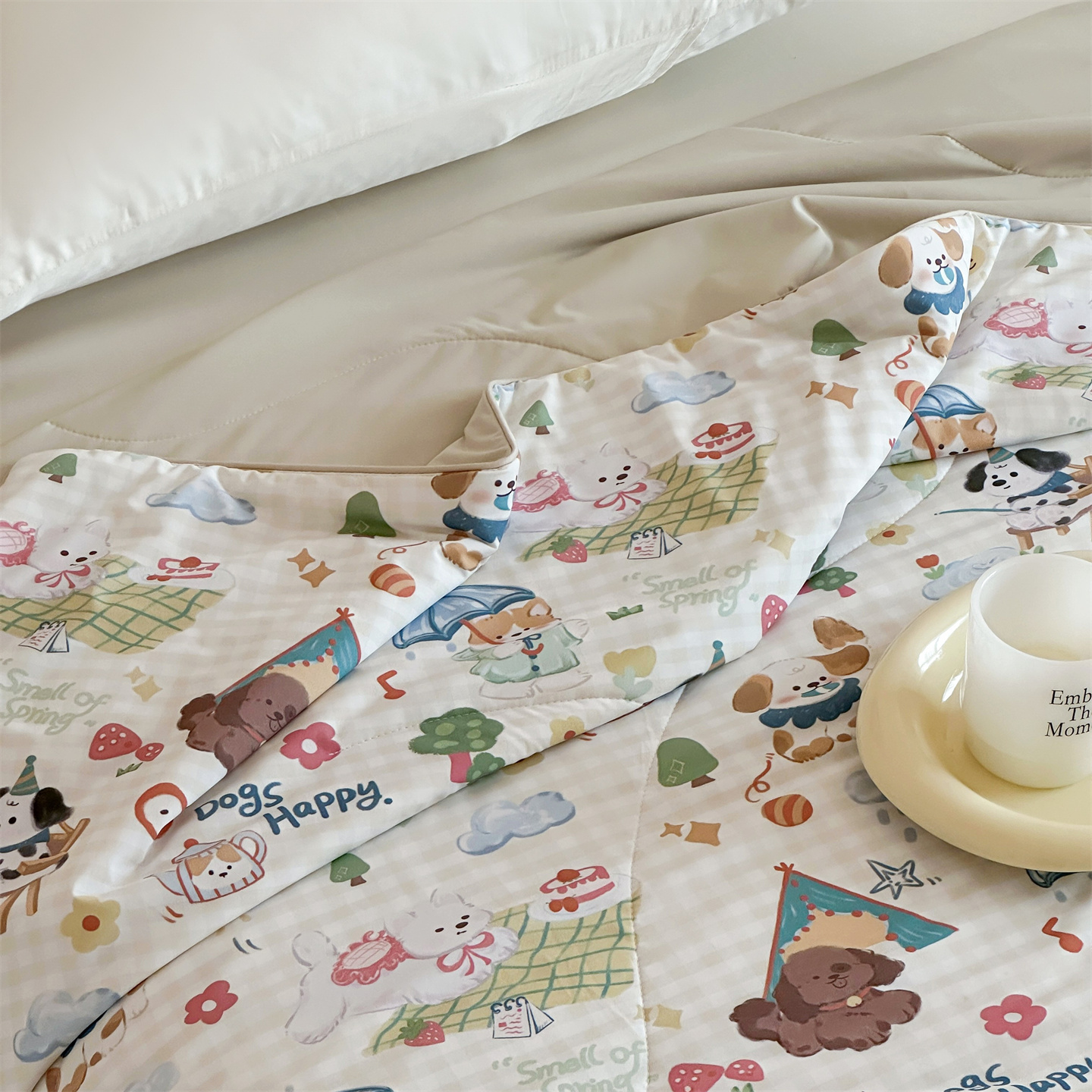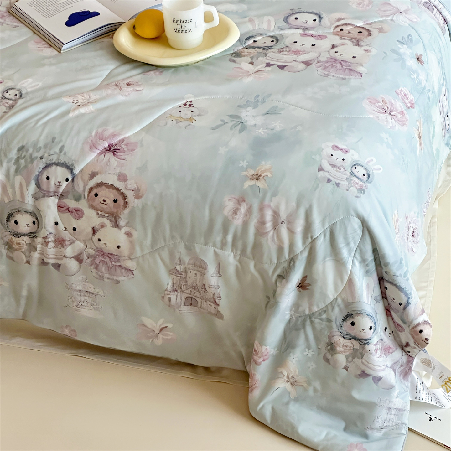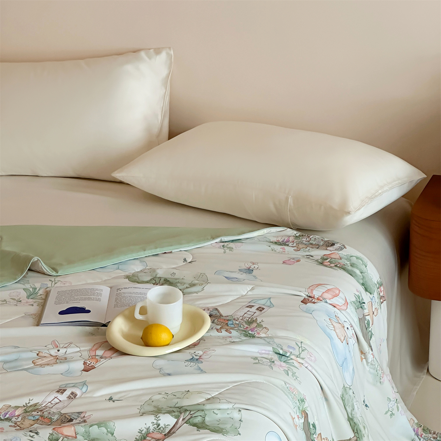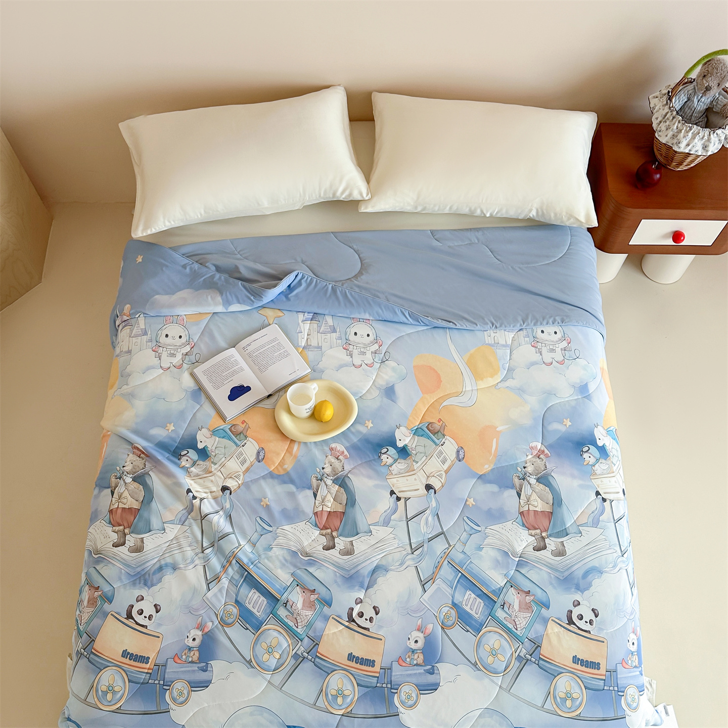 【山宁泰微生物抗菌】傲蕾睡梦森林经典蚕蛹大豆二合一子母被拉链双胎被双蛋白冬被,白色