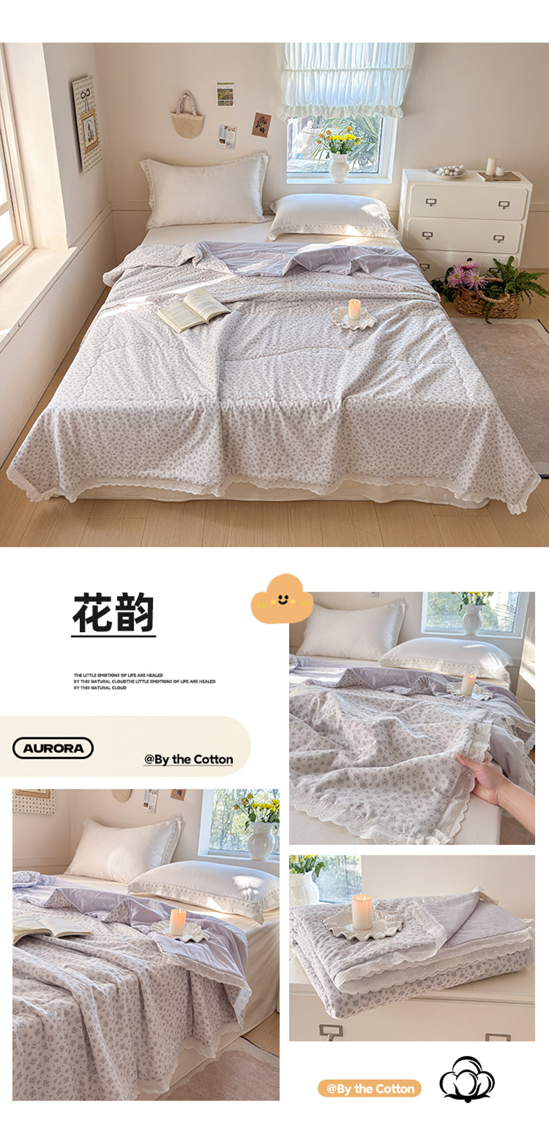 (总)摩时 2026新款全棉色织双层纱夏被夏凉被空调被,千枝万朵,岁月如歌,甜梦时光