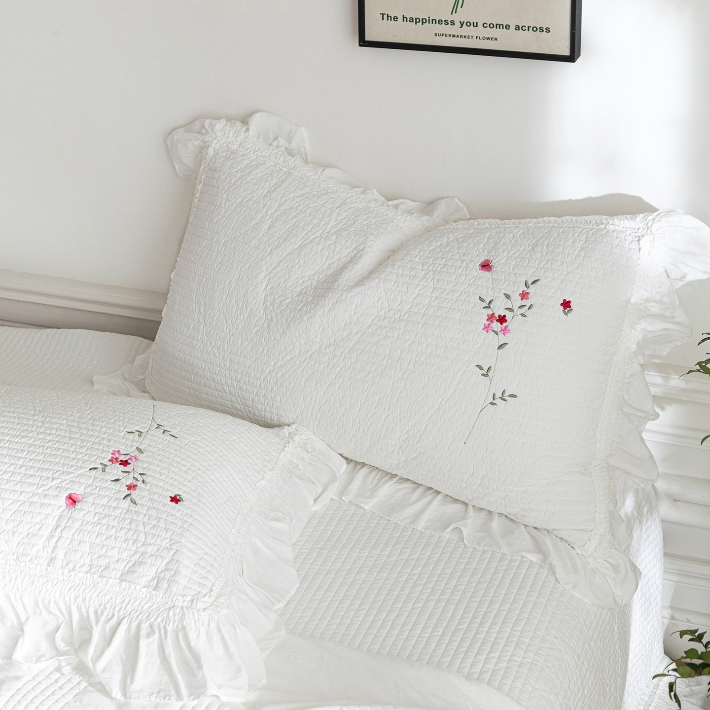 (总)上喜 2026新款韩国细纱棉床盖三件套多功能夏被四件套,纯白色,浅粉色,浅黄色,浅蓝色