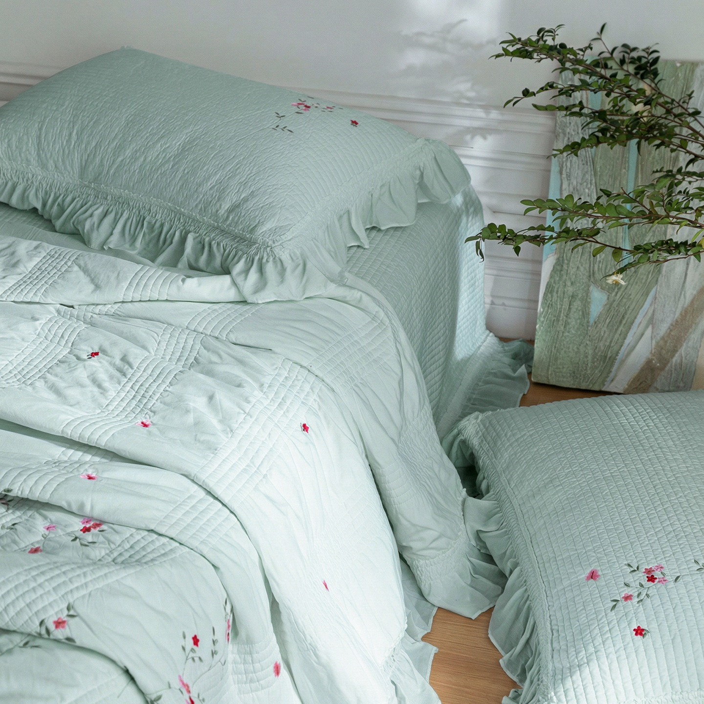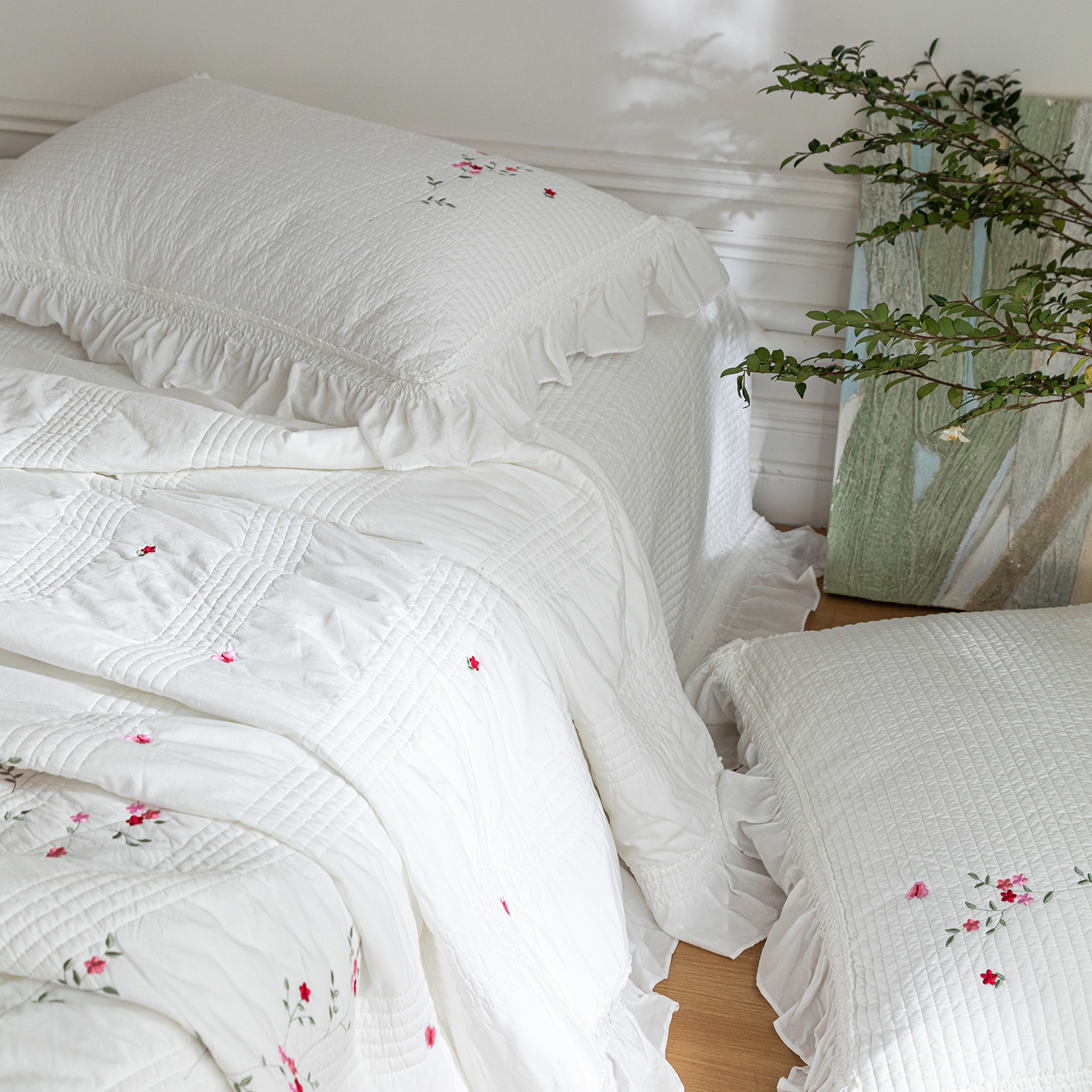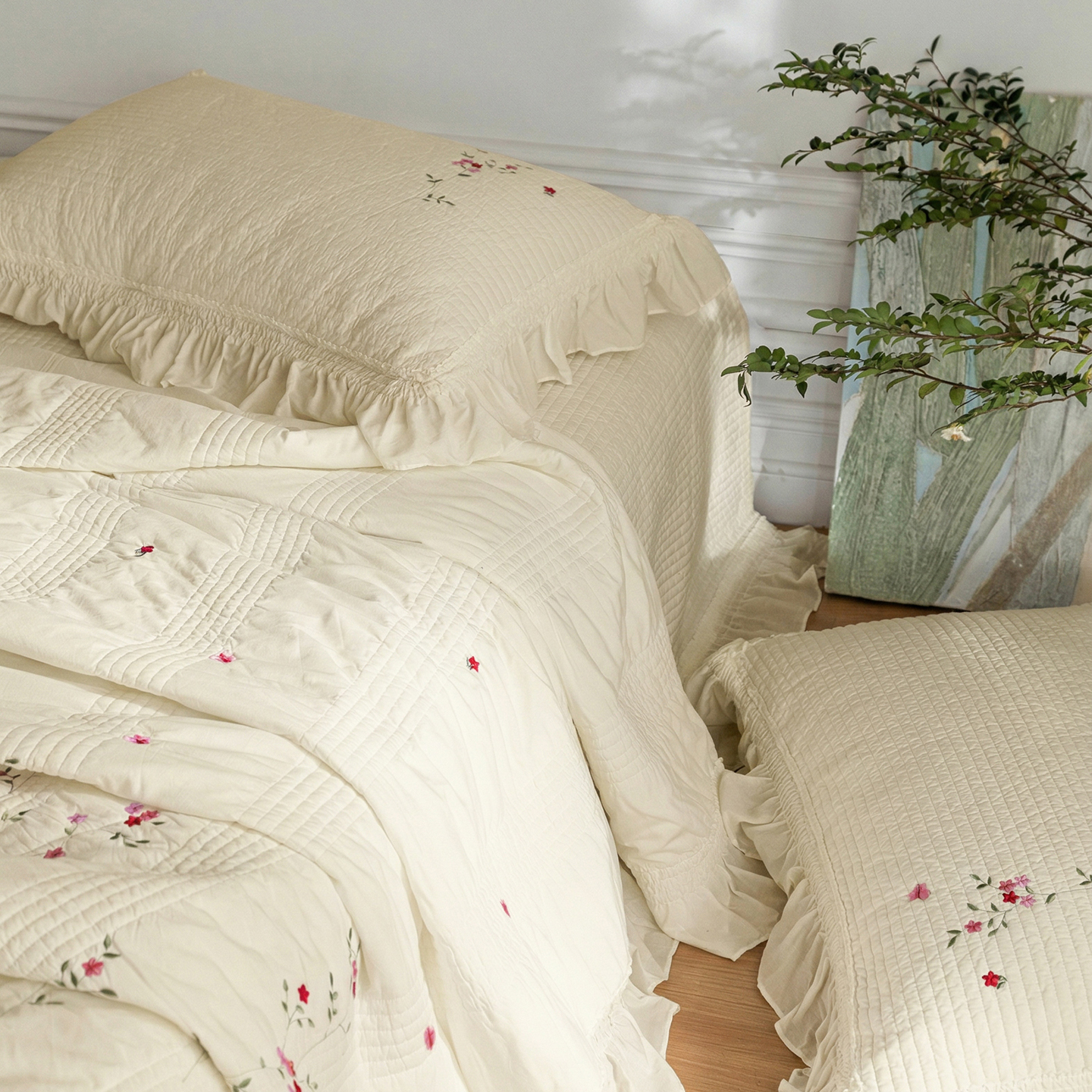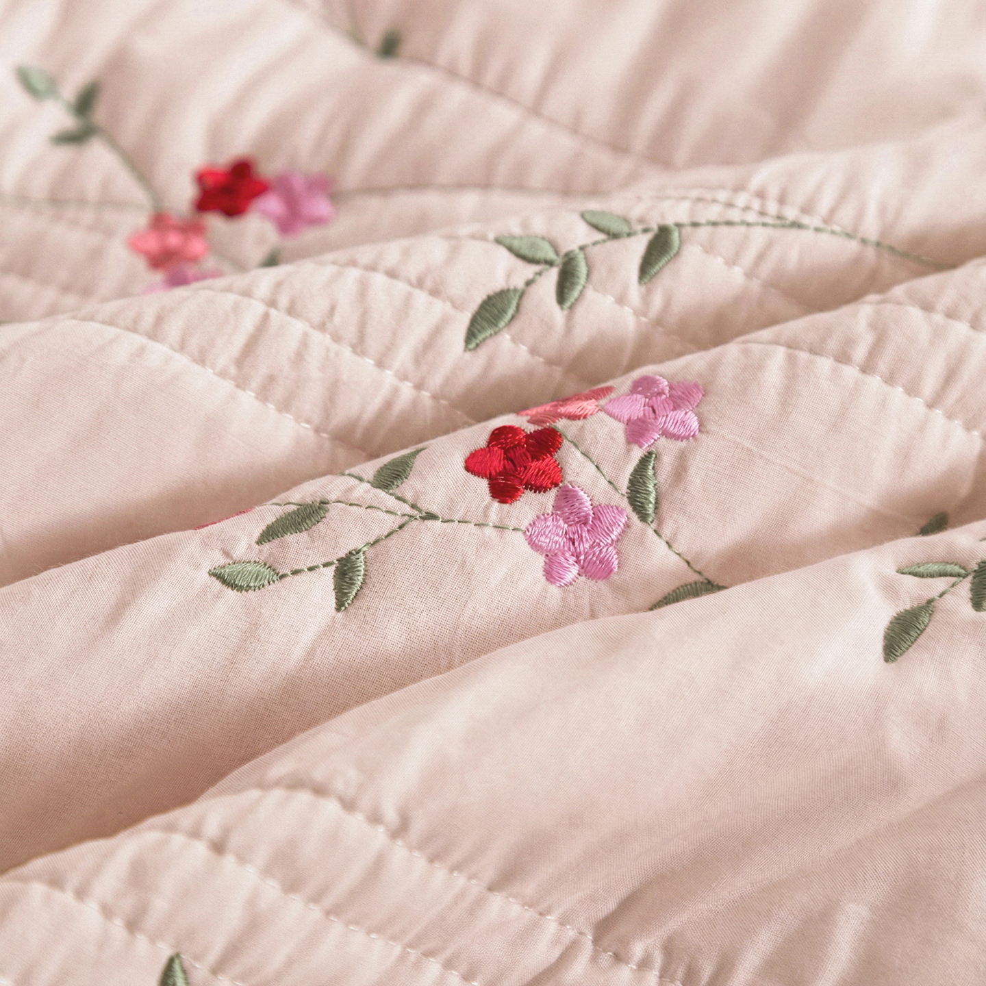 (总)上喜 2026新款棉麻小花刺绣款床盖多功能被子系列,麻本色,麻粉色