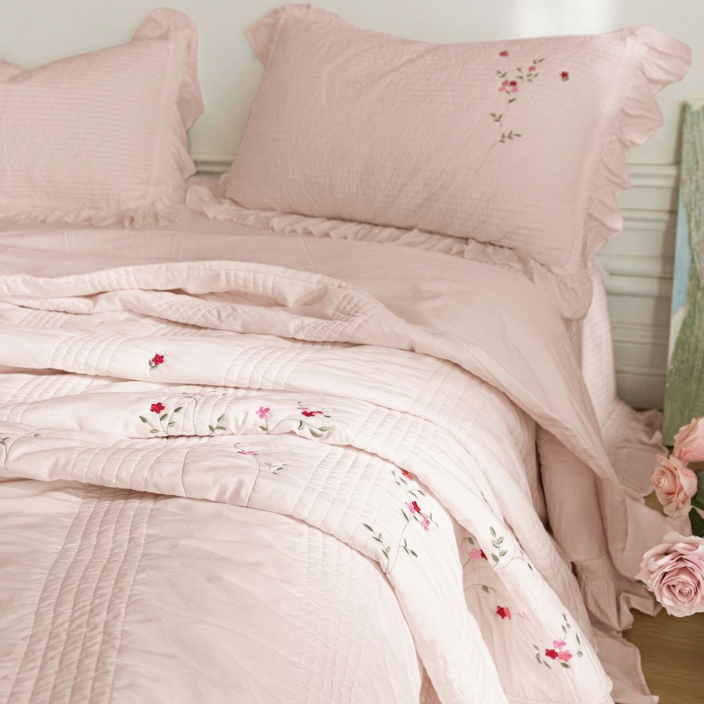 上喜 2026新款韩国细纱棉床盖三件套多功能夏被四件套 浅粉色