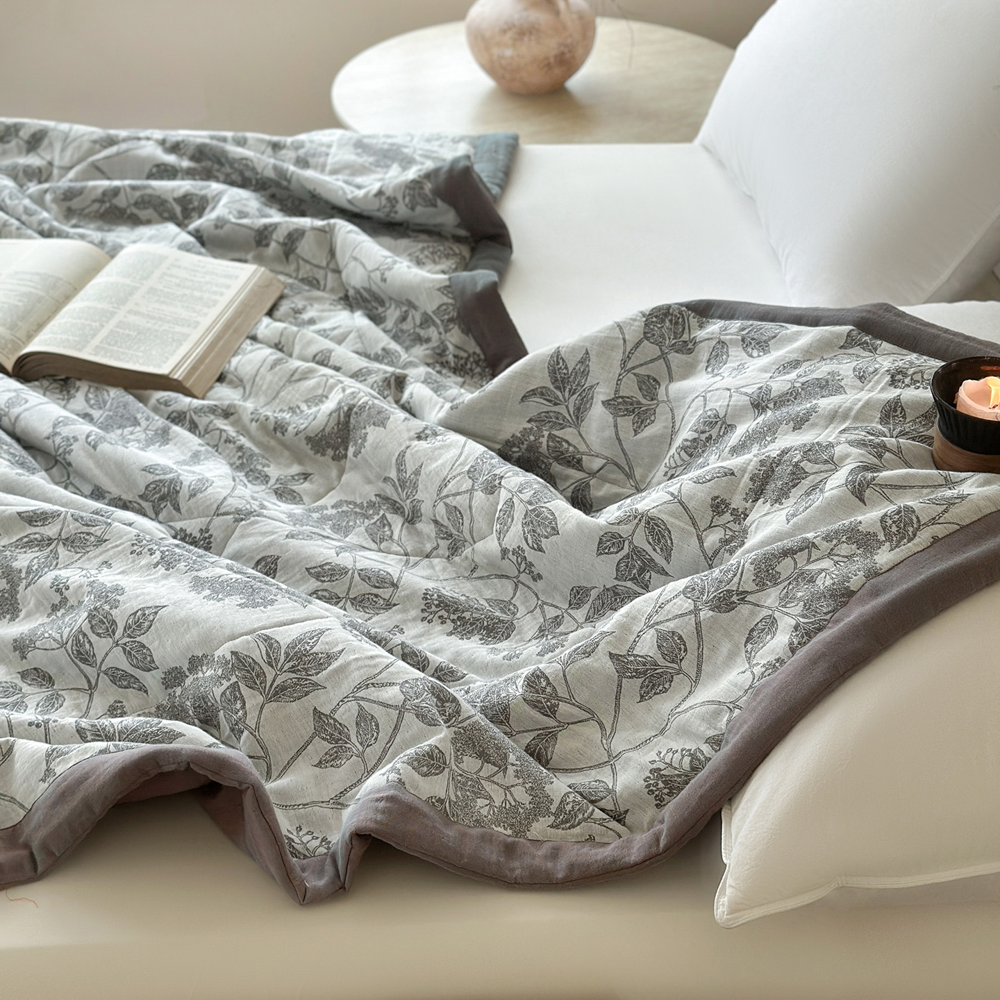 (总)摩时 2026新款全棉色织双层纱夏被夏凉被空调被,千枝万朵,岁月如歌,甜梦时光