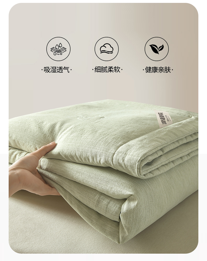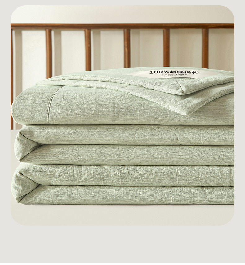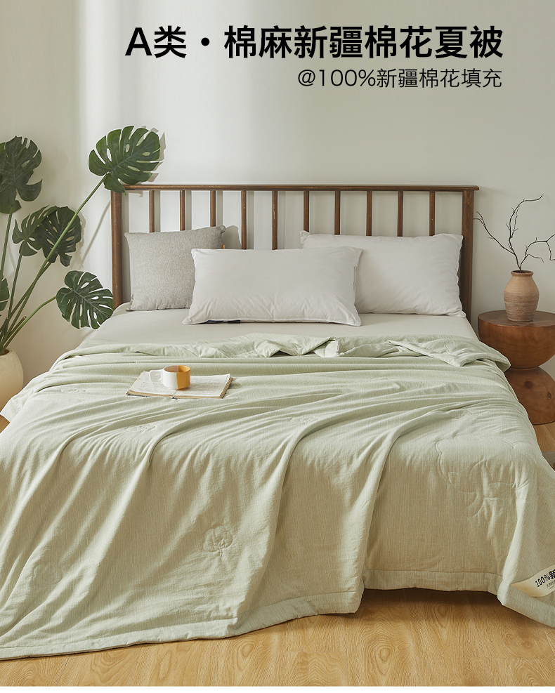 被子 > 夏被 > 招财星家纺 2026新款纯色棉麻100%新疆棉花夏被棉花被夏凉被空调被(带质检报告买家秀) 棉麻-绿色