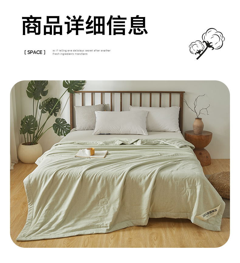 商品名称:招财星家纺 2026新款纯色棉麻100%新疆棉花夏被棉花被夏凉被空调被(带质检报告买家秀) 棉麻-绿色