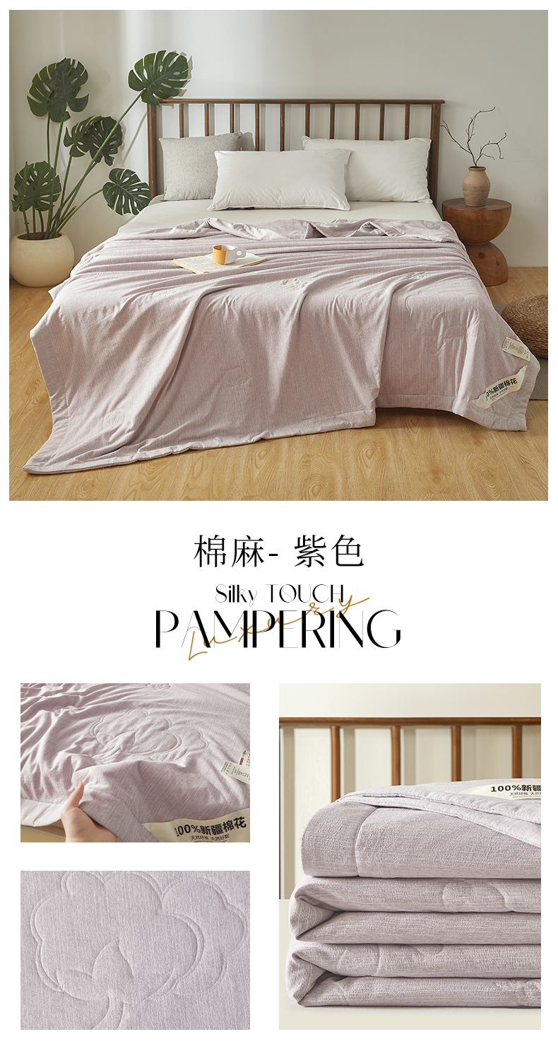 (总)招财星家纺 2026新款纯色棉麻100%新疆棉花夏被棉花被夏凉被空调被(带质检报告买家秀),棉麻-绿色,棉麻- 紫色,棉麻-粉色,棉麻-灰色,棉麻-米杏,棉麻-浅咖,组合图仅做展示不可下单