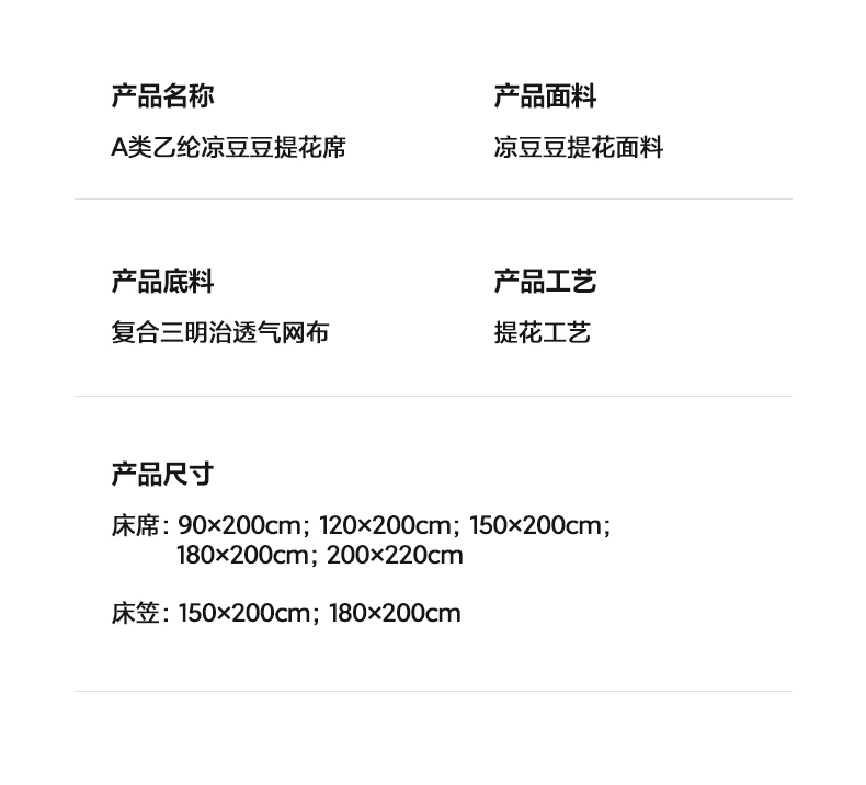 卡初家居(原微来) 2026新款A类乙纶凉豆豆提花席凉席席子-花影系列 组合图仅供展示不可下单