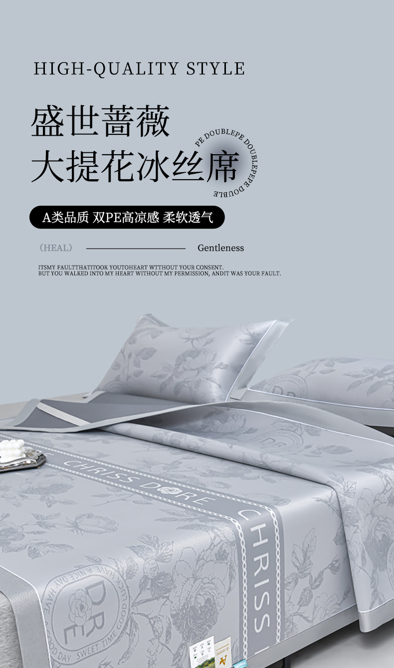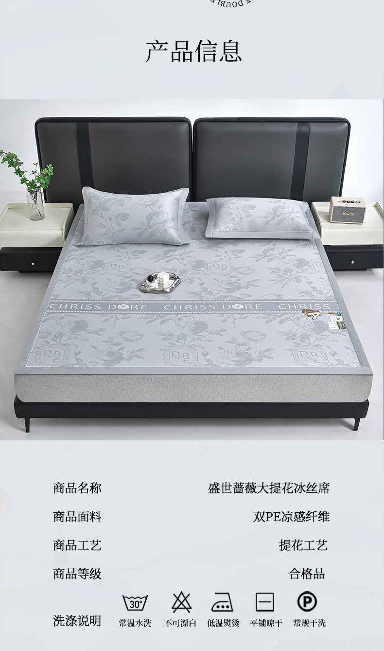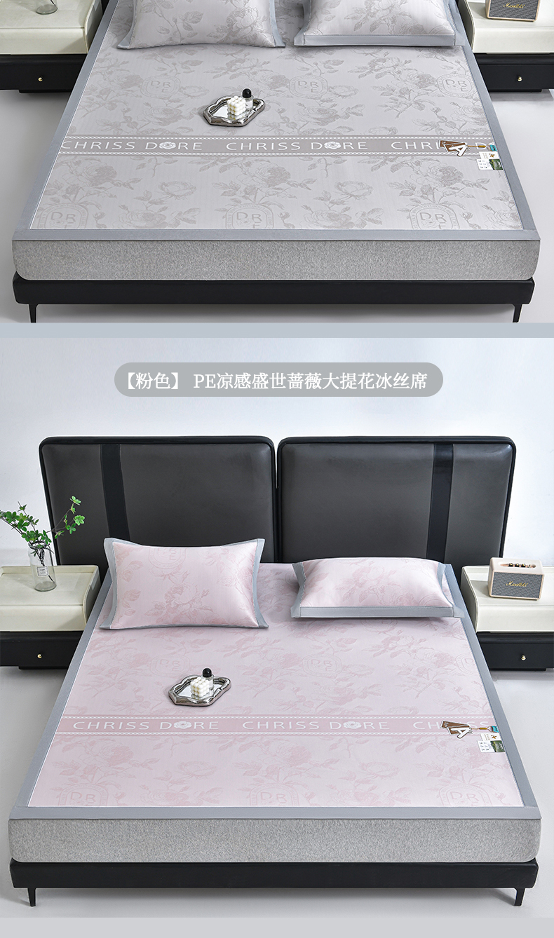 商品名称:(总)小牛席业 2026春夏新款【实拍风格】双PE高凉感凉席席子-盛世蔷薇冰丝席藤席冰藤席豆豆席乳胶席