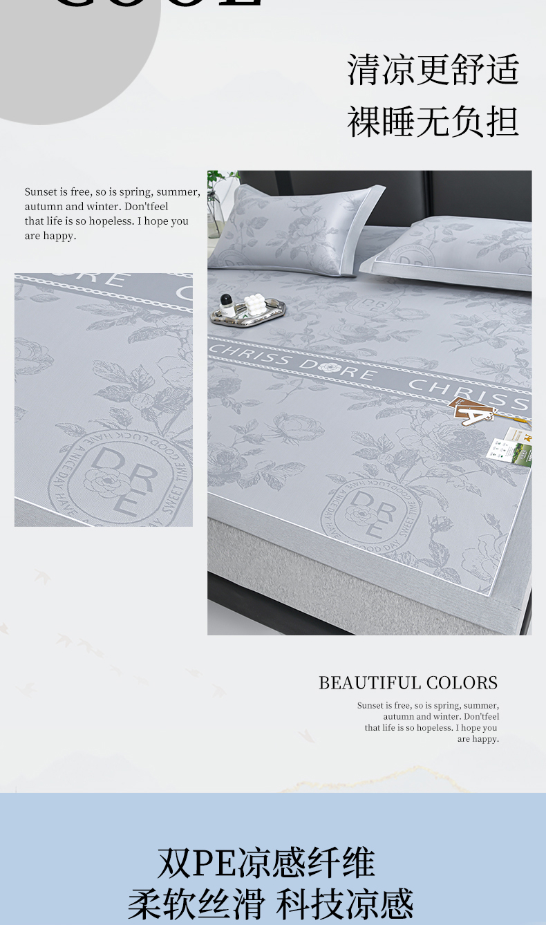 (总)小牛席业 2026春夏新款【实拍风格】PE凉感凉席席子-轻奢赫本(床笠款),轻奢赫本-灰色,轻奢赫本-粉色,轻奢赫本-蓝色,轻奢赫本-香槟