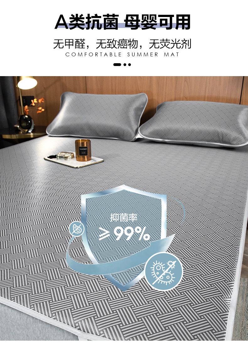 当前位置: 91家纺网 > 商品网购 > 床上用品 > 凉席 > 其他凉席 > 莱家富 2026新款1800DA类抗菌艾草驱蚊碳光冰丝凉席三件套 饼干花-灰