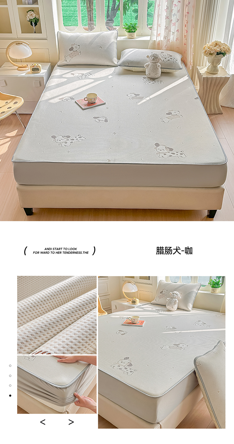 小萌虎 2026年新款乙纶PE提花冰豆豆凉席床笠款卡通 腊肠犬-咖