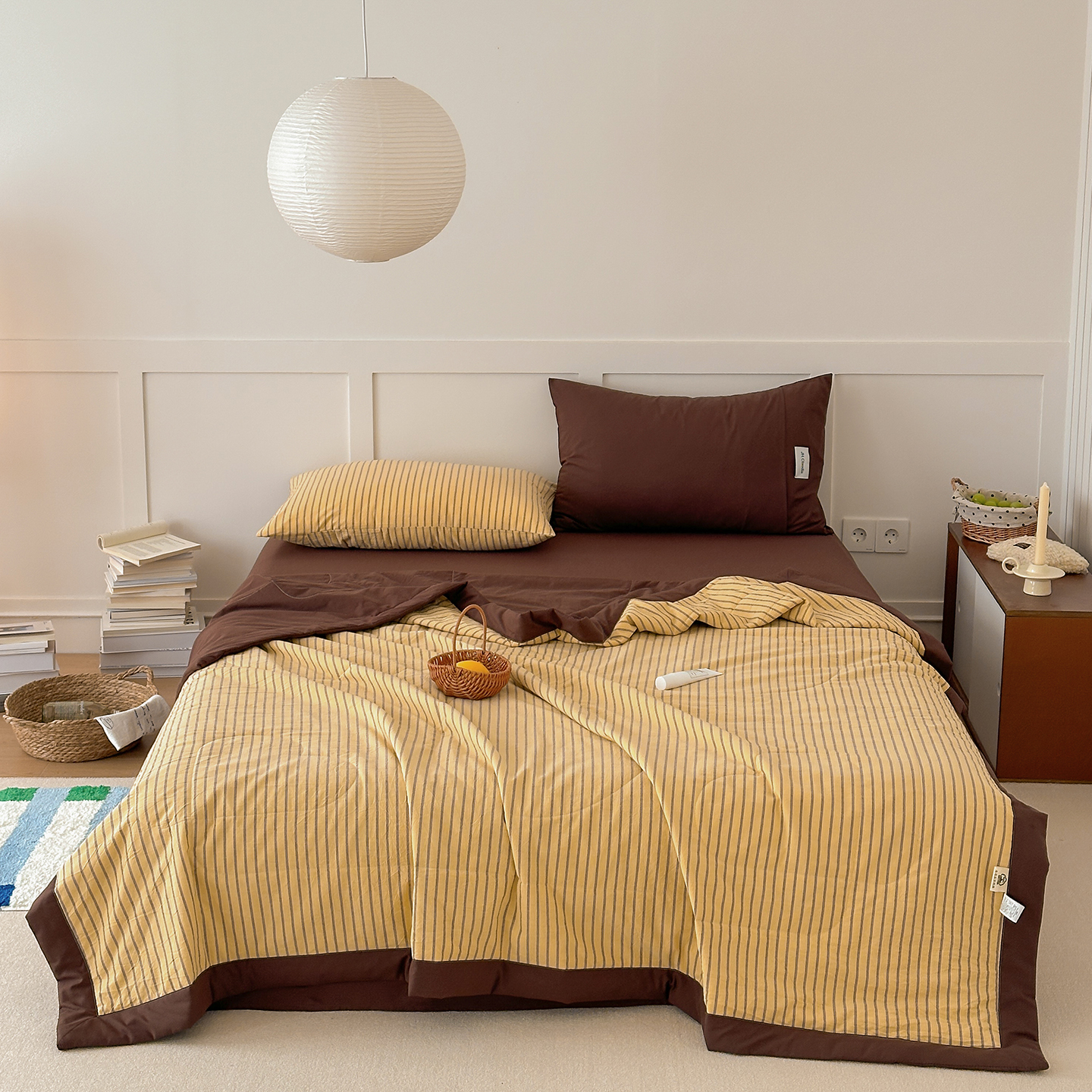 • 91家纺网 家纺一手货源 找家纺 玖弘家居 2026新款凉感亲肤羽丝棉夏被 黄咖条