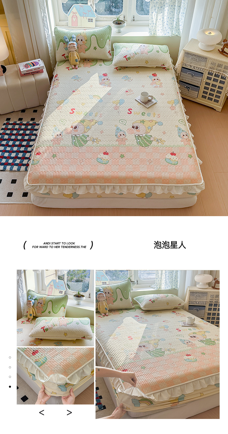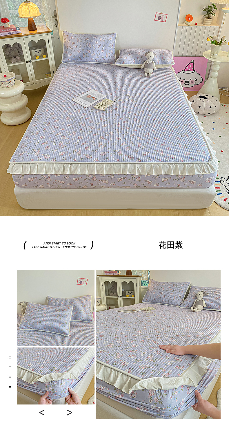 • 91家纺网 家纺一手货源 找家纺 (总)布柔 2026春夏新款全棉印花夹棉单床笠床垫保护套罩 床笠单件,艾米丽,波点,花田粉,花田绿,花田紫,泡泡星人,碎花兔兔,碎花樱桃,童年
