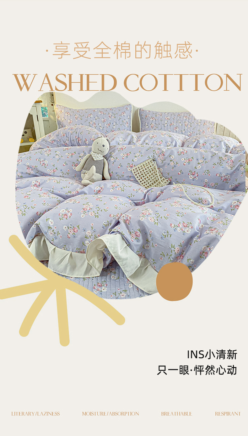 (总)布柔 2026春夏新款13070纯棉全棉印花绣花床笠三件套四件套,曲奇粉,曲奇黄,曲奇蓝