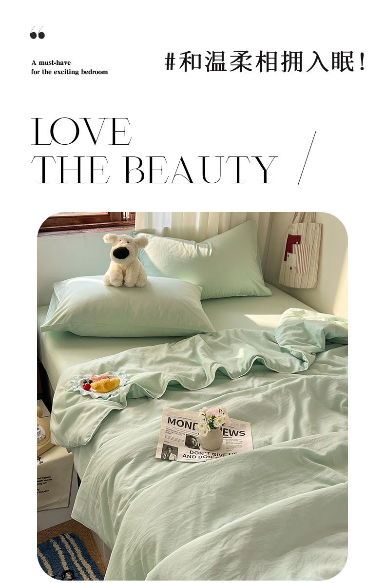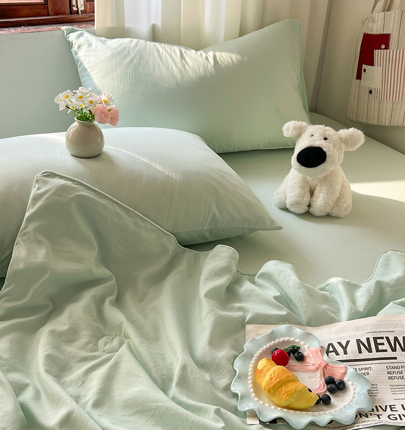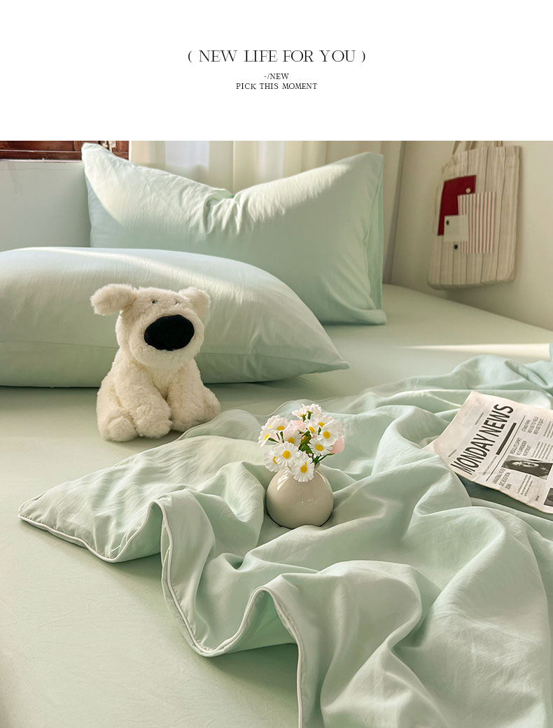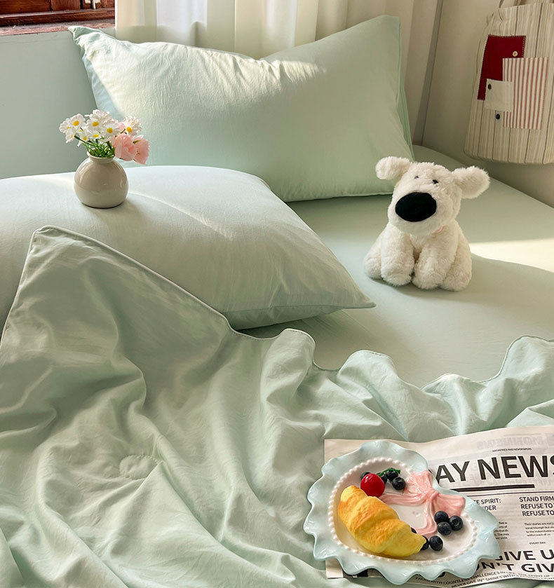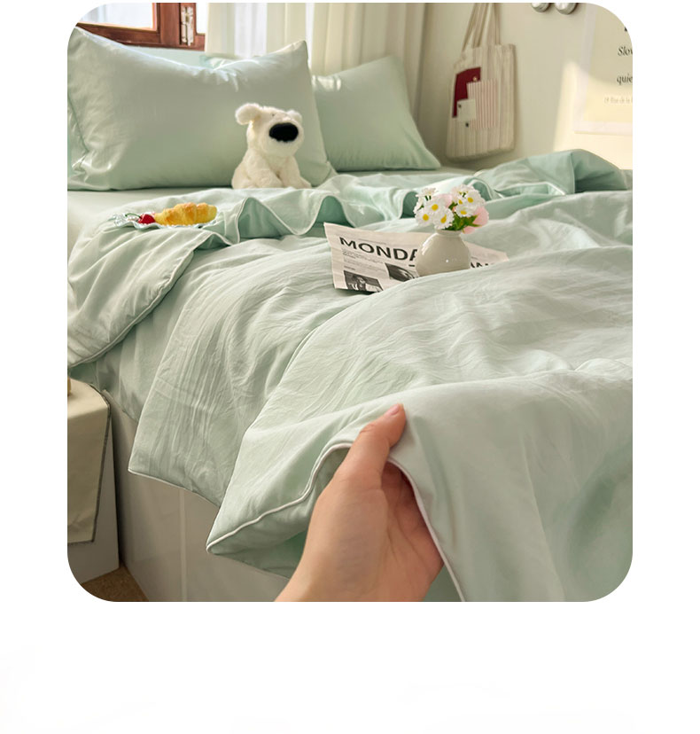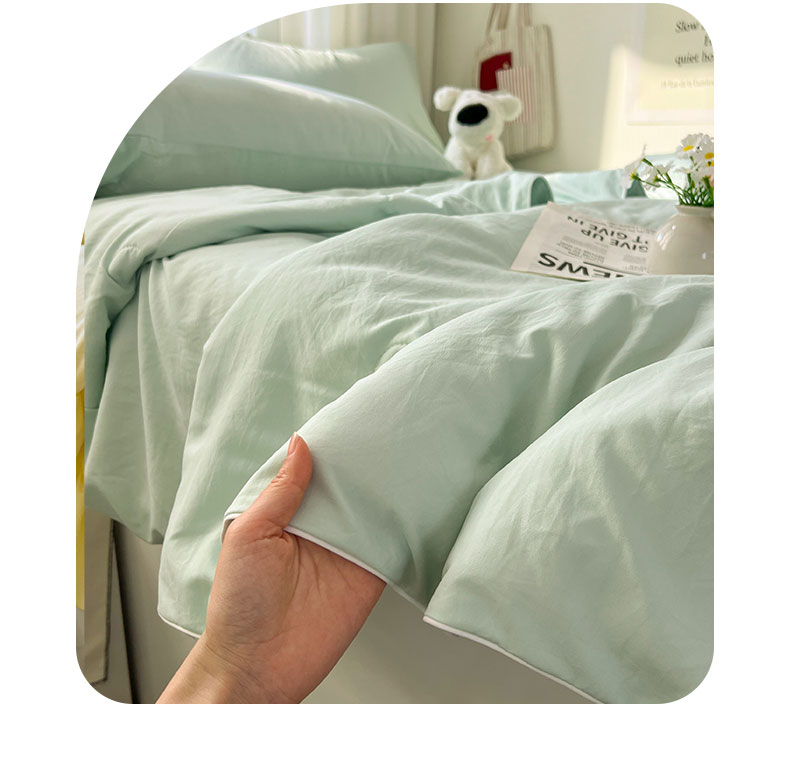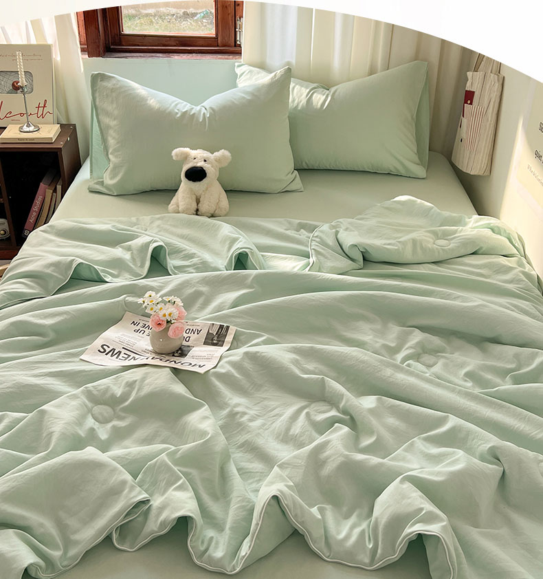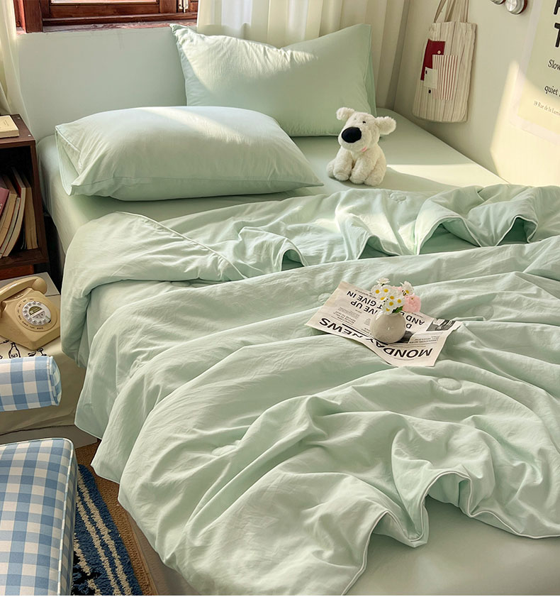 当前位置: 91家纺网 > 商品网购 > 床品套件 > 四件套 > 夏被四件套 > 冕悠家纺 2026春夏新款A类高克重超级无敌柔软水洗棉拼色夏被空调被夏凉被四件套 春芜绿-夏凉被