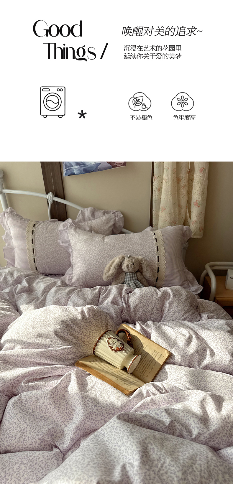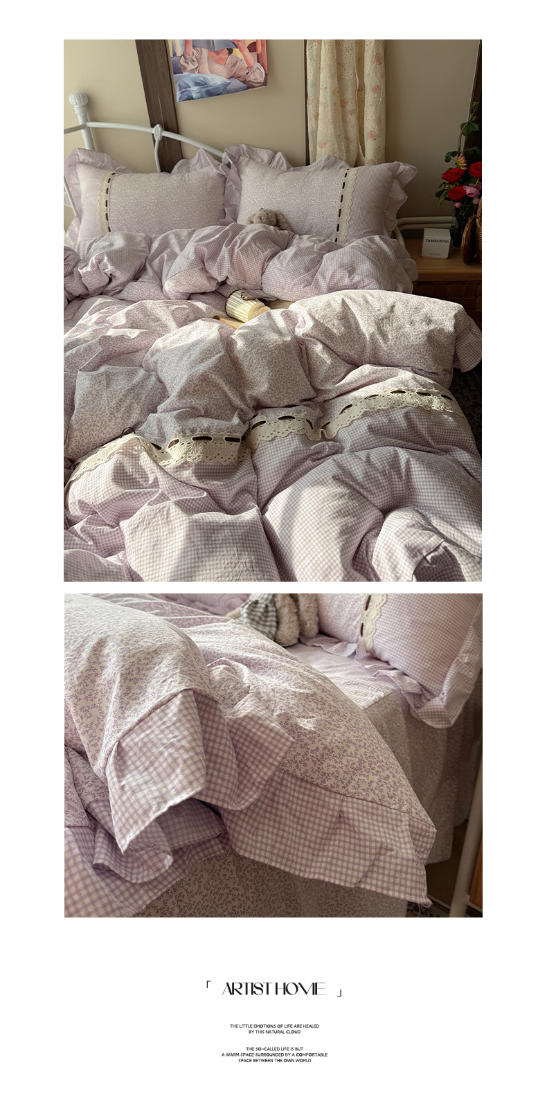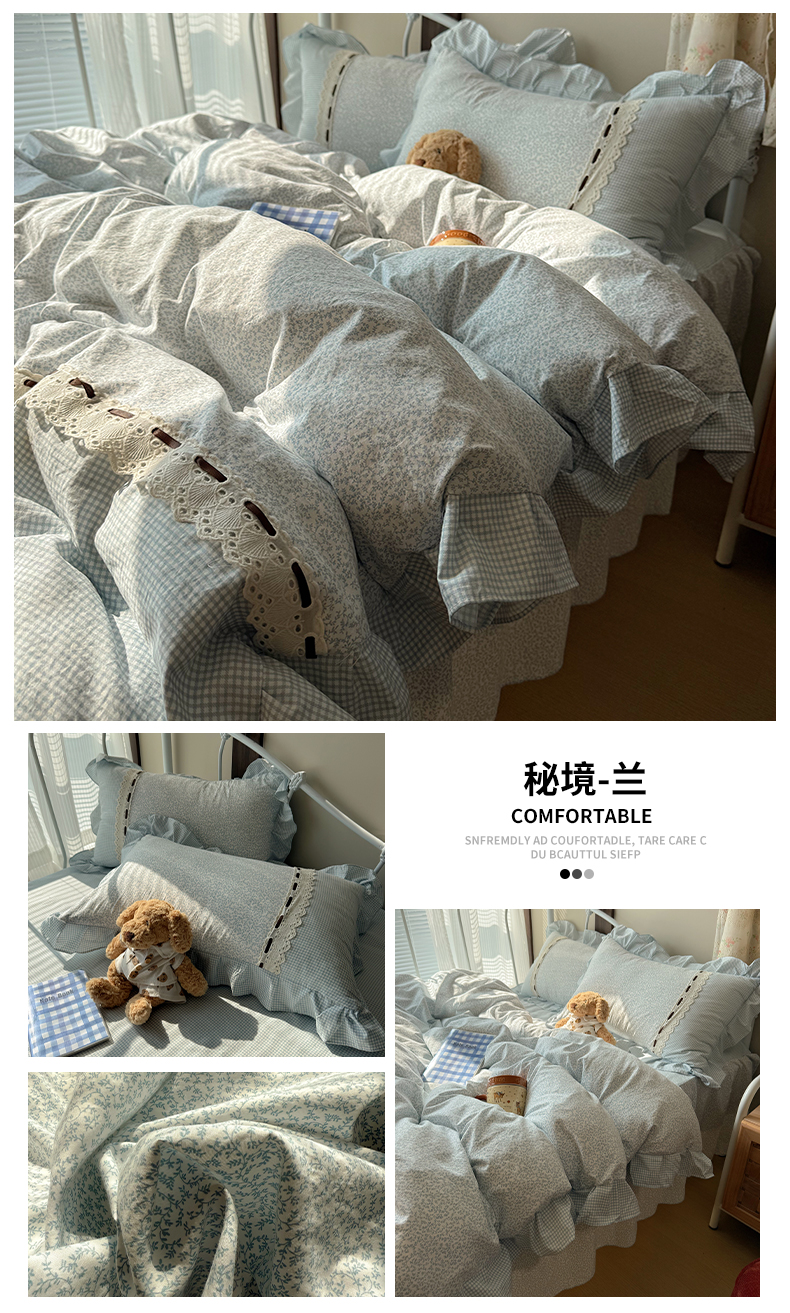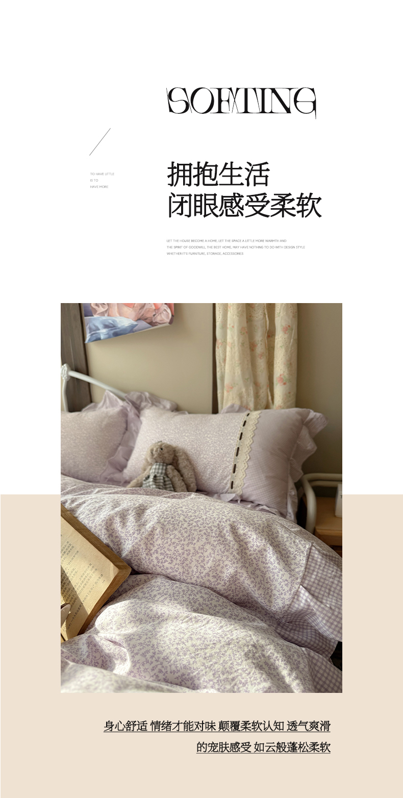 当前位置: 91家纺网 > 商品网购 > 床品套件 > 四件套 > 其它四件套 > 韩都家居 2026春夏新款韩式小碎花水洗古棉花边四件套 秘境-紫